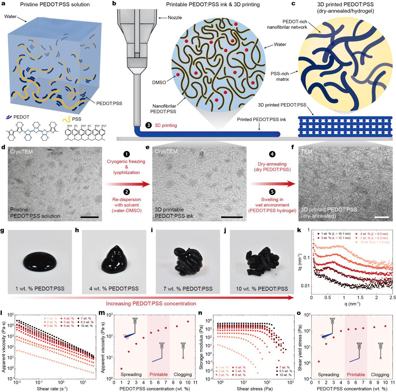 ��3D��ӡPEDOT:PSSīˮ�ĺ����O(sh��)Ӌ(j��)��ԓ���g(sh��)���P(gu��n)�I��ͨ����r�£���(d��o)늾ۺ���������w��ۺ�����Һ��ʽ�ӹ�ʹ�ã�����(d��ng)�ԏ�(qi��ng)������ֱ������3D��ӡ�������x�茧(d��o)늾ۺ���3D��ӡ���������׃���ܣ�ԓ�о��F(tu��n)�(du��)�_�l(f��)��һ�N���εķ������̘I(y��)��PEDOT:PSSˮ��Һ�a(ch��n)Ʒ�D(zhu��n)��������ܿ�3D��ӡ�Č�(d��o)늾ۺ���īˮ���D1��������ͨ�^��?d��)�ԡ����������͜���ո���ķ�ʽ���õ�PEDOT:PSS��ĭ��{���w�S�Y(ji��)��(g��u)��Ȼ����ˮ-DMSO��Ԫ�܄���������·�ɢ���C(j��)е��ĥ���ɵõ���ͬ��ȵ�PEDOT:PSSīˮ����׃�W(xu��)�y(c��)ԇ�l(f��)�F(xi��n)����(d��ng)īˮ��PEDOT:PSS�̺����^�͕r(sh��)��1-4 wt.������ճ���^�͡�������(y��ng)���ͣ����ڴ�ӡ���ײ����ϔU(ku��)ɢ������(d��ng)PEDOT:PSS�̺���̫�ߕr(sh��)������8 wt.����������PEDOT:PSS�{��ԭ�w�S�ľۼ���3D��ӡ�r(sh��)������ɇ�������F(xi��n)�̺����m�У�5-7 wt.�����r(sh��)PEDOT:PSSīˮ��׃������ѡ��܉�M��ֱ��3D��ӡ��Ҫ���@�N�����Ƃ����PEDOT:PSS��(w��n)���ԃ�(y��u)�������Ҝ��±���1��(g��)����׃���ܺͿɴ�ӡ�ԛ]�����@׃����