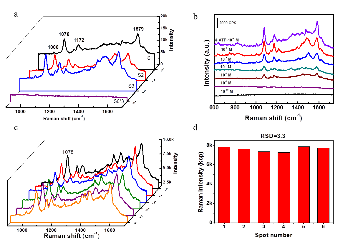 �о��F(tu��n)�(du��)̽�����@�N�p���ټ{�����ӈD������нY(ji��)��(g��u)���߂�ı�������(qi��ng)����ɢ�䣨SERS�����|(zh��)����ʹ��4-�������������̽ᘷ��ӵėl�������ɷN��͵ļ{��/�K�ĽM�b�w��о��@�����@����SERS����(qi��ng)Ч���������е���10-9 mol L-1�ęz�y��������ͨ�^��Ʒ��(n��i)���S�C(j��)ȡ�c(di��n)�yԇ���C���ˌ�(du��)���@�N�����ԈD������нY(ji��)��(g��u)�������ڴ�߶ȷ�����(n��i)��(sh��)�F(xi��n)SERS���ܵĸ��جF(xi��n)����