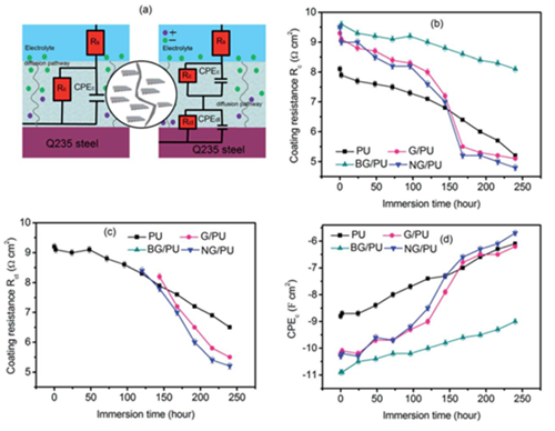 �Ї��ƌW(xu��)Ժ�������ϼ��g(sh��)�c�����о������M(j��n)Ϳ���cճ�ϼ��g(sh��)�F(tu��n)�(du��)ᘌ�(du��)ԓ���}����������ˡ����g���M(j��n)���ԡ��ęC(j��)�����D1����������քe���õ�����{���c(di��n)��BNNDs�������̘I(y��)��ʯīϩ�ķ�ɢ����BNNDsͨ�^��(qi��ng)�ҵĦ�-������������ʯīϩ���棬���������ɢ�ԡ�ͬ�r(sh��)��BNNDs�Ĵ���������ʯīϩ�Č�(d��o)����ԣ���Ч��������ꎘO���g���M(j��n)���ԣ��D2����늻��W(xu��)�yԇ������BNNDs���Ե�ʯīϩ���Ͼ��Ѓ�(y��u)���ķ��o(h��)���ܣ���(f��)��Ϳ�ӵĸ��g��������(du��)�հ�Ϳ���½���280����Ϳ�����������2��(g��)��(sh��)����(j��)�����⣬�F(tu��n)�(du��)�Ƃ���B���sʯīϩ��BG����N���sʯīϩ��NG����������������(du��)ˮ�Ծ۰�����PU����֬�M(j��n)���˸��ԡ�������������BGǶ��PU���w�пɴ����߿����g���ܡ��Y(ji��)���@ʾ�����s��ӽ��ܓ��s��ʯīϩ��BG���������ż���g�Ļ��A(ch��)�ϱ��F(xi��n)���L�ڵ����g�ԣ������s��ӽ��ܓ��s��ʯīϩ��NG�������䌧(d��o)�������(qi��ng)�����F(xi��n)�����g���M(j��n)�ԡ�ͨ������Zf=0.01Hz��BG/PU���迹ģ���_(d��)��108��cm2����3.5wt%NaCl��aq���н���240С�r(sh��)���c��PU��G/PU��NG/PU��106��cm2����������˴�s3��(g��)��(sh��)����(j��)�����о����Ƃ���Ѓ�(y��u)���;��Ե�ʯīϩ������Ϳ���ṩ����Ҫ�đ�(y��ng)��ǰ�����D3�������P(gu��n)�о������l(f��)����Journal of Materials Chemistry A�� 2019��7��2864-2874��Journal of Materials Chemistry A��2019��7��13511-13521��ACS Sustainable Chemistry & Engineering��2019��7��10900-10911��