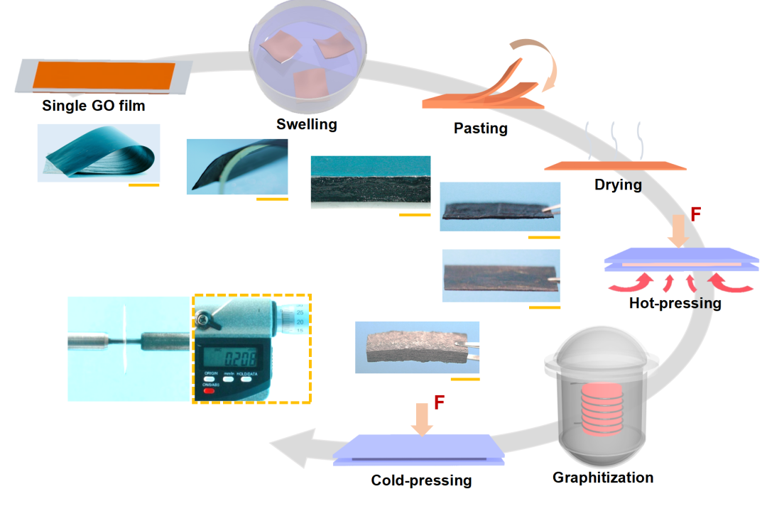 ʯīϩĤ�����䃞(y��u)���Č�(d��o)늌�(d��o)�����ܶ������P(gu��n)ע��Ŀǰ��(j��)ʯīϩĤ�Č�(d��o)������߿�������1940W m-1 K-1����ʯīϩ��Ĥ�ķ������ԣ���ӹ���ˇ���Է֞�ɴ��һ�ǻ���ʯīϩ������ʯīϩ����Һ�ӹ���ʽ����һ�N�ǻ���ʯīϩ���w�ĉ��ƹ�ˇ��ǰ�������܄��ē]�l(f��)�������ԣ�����܄��]�l(f��)�γɚ��ӽY(ji��)��(g��u)�����˃�(n��i)���܄��ē]�l(f��)�������أ��Ƃ����ʯīϩ��Ĥ�����^�͵�ȡ��ȣ���(d��o)���ʲ��ߣ������Ƶõ�Ĥ���ڷ��w֮�g��߅���y�����������������^�͵Č�(d��o)���ʣ�������δ��(sh��)�F(xi��n)ͨ�^ֱ�ӷ����Ƃ��߸ߺ�Ⱥߌ�(d��o)���ʯīϩĤ�����Q�@һ���}���㽭��W(xu��)�߳����ڈF(tu��n)�(du��)���һ�N��������ʯīϩ���ں�Ч��(y��ng)���g��ճ�ӵķ����팍(sh��)�F(xi��n)�ߟ�ͨ��ʯīϩ��Ĥ���Ƃ䡣���P(gu��n)�ɹ��ԡ�Ultrathick and highly thermally conductive graphene films by self-fusion strategy�����}�l(f��)���ڡ�Carbon����doi: 10.1016/j.carbon.2020.05.051���ϣ�Փ�ĵ�һ���ߞ�17��(j��)�Tʿ�����Ԗ|��