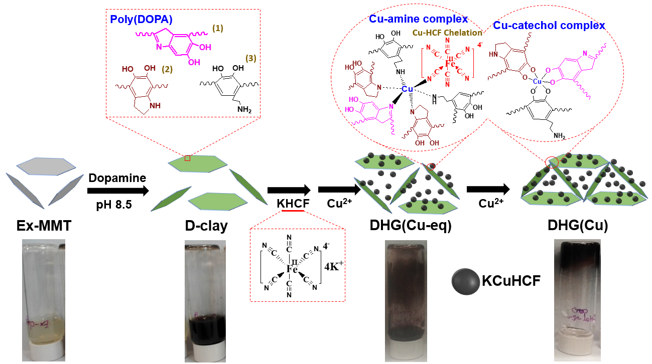 �������S��W�j�Y����ˮ���z��ؓ�dKCuHCF�{���w���ķdz��õ��d�w���܉��ְl�]KC u HCF���������ܣ����Ƕ���ˮ���z����ͨ�^���r�I���γɵ��ЙC�ۺ����ݗ�������^��ڱ����У����A���F����Oؐ��z���ڵ�ճ�����������l��ͨ�^��Ͱ����Ծۺ�����Ó����MMT���{��Ƭ�ӱ����γ�һ�Ӹ�������ӺͰ����ȶ���܈F�Y���ľ۶�Ͱ�Ϳ�ӣ������þ۶�Ͱ��c�~�x�ӣ�Cu2+���j�����ã�һ�����c���F�軯⛷�����MMT�{��Ƭ�ӱ���ԭλ���LKCuHCF�{���w������һ�������^��Cu2+�j���������FMMT�{��Ƭ�ӵ��ԽM�b�γ����S��W�j�Y���ğo�C-�ЙC�ͺ�ˮ���z����D1��ʾ�����У��ЙC����ռ�����dz�С���H~0.82 wt%��������ݗ��h���µ�ʹ�á�