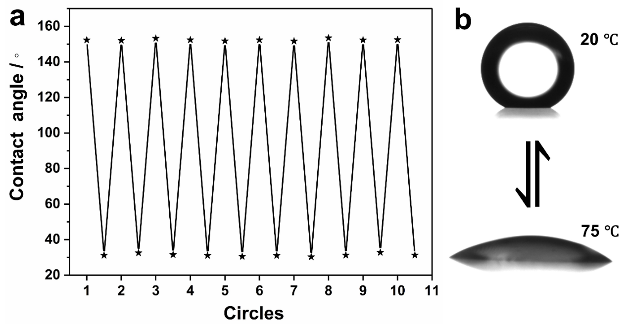 ��С��������⣬�ڱ����M�Мض�푑�(y��ng)��PNIPAAm��֦�Ɍ��F(xi��n)�ضȿ��Ƶı�������О��D(zhu��n)׃����(d��ng)��֦��PNIPAAm�_����Ѻ�ȣ�45 nm���r���Y(ji��)��(g��u)�������ԿɾS��ˮ�³��������|(zh��)����(d��ng)�ضȏ�20��C���ߵ�75��C�r��PNIPAAM-g-HCAs��ˮ��OCA��153�㽵�͵�31�㡣ͨ�^���͜ضȣ��͵ĝ����О���Ի֏�(f��)��ԭʼ��B(t��i)�����F(xi��n)�˜ضȿ��Ƴ��������|(zh��)���H�����|(zh��)֮�g�Ŀ����D(zhu��n)׃���ҝ������D(zhu��n)׃���кܺõ��جF(xi��n)�Ժͷ�(w��n)���ԣ��Mһ��չ�F(xi��n)�ˌ����L���ȶ༉�Y(ji��)��(g��u)����ˮ���͵ķ��x���^�V������(y��ng)����оƬ������O(sh��)��ȷ���ĝ�����
