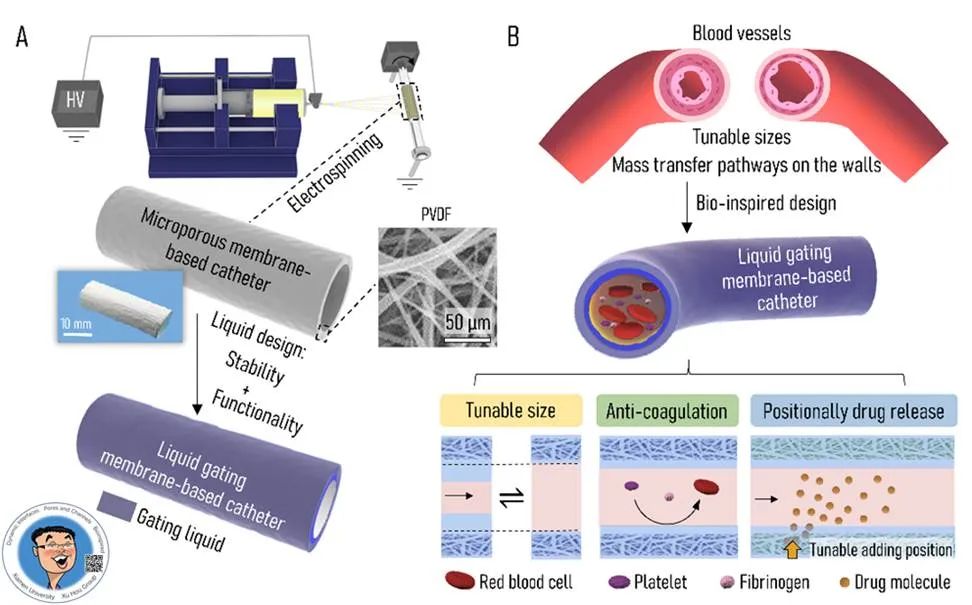 �t�Ì����Dz����w�ȵ���ܛ�ܵ�������Һ�w��������ʽ�t����еֲ�롣�F�е��t�Ì����а�������ѪҺ����Ѫ�ܡ�������Ѫ��֧�ܵ�ֲ������Ҍ����Լ�����ܵȡ������w�ܵ�����Ҫ���þ۰����������z���t�ø߷����ƳɵČ��w�ܵ����Թ����|�Ķ˿��M���ĩ��ݔ�����@�ӵ��t�Ì��ܴ���һ���ľ����ԣ������o���cֲ��h���M�л��ӣ�ȱ���h���m���ԣ������Ԇ�һ�Լ���������ֲ�������Ѫ˨����Ⱦ�Ȇ��}�����ڴˣ��B�T��W������ڈF��c�Ĵ���W����н��ڈF����������һ�NҺ�w�T���t�Ì��ܣ����x���t�Ì��ܭh��푑��ԵĄӑB׃��������Ѫ�Լ����cˎ��ጷŹ��ܡ������ԡ�Bio-inspired Liquid Gating Membrane-based Catheter with Anti-coagulation and Positionally Drug Release Properties�����}�l���ڡ�Science Advances���ϡ�