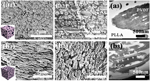 ���ݎ�����W�����M�����n�}�M�L�ڏ��¸߷��Ӳ��Ϸ����������о����ڷ��������݄������OӋ�������ԟo�C�{���������ݺͶ����M�ָ߷��Ӳ��ϽY���{�ص��I��ȡ��һϵ���Mչ��Compos. Part B-Eng. 2020, 198, 108153; Polymer 2020, 208, 122948; J. Mater. Chem. A 2019, 7, 4903, Polymer 2019, 177, 139; Polymer 2019, 185, 121952; ACS Appl. Mater. Interfaces 2018, 10, 8411; Macromolecules 2017, 50, 9494; ACS Appl. Mater. Interfaces 2017, 9, 14358; J. Phys. Chem. B 2016, 120, 9240; ACS Macro Lett. 2015, 4, 1398����������F����ͨ�^����������ԭλ�������������ͺϾ���Interfacial Stereo complex crystals, i-SC�����Ƃ�Y�������߷����p�B�m�Ͻ���·�������D1��ʾ�������ڷ��������ͷ������ݲ����ھ����ᣨPLLA��/��ƫ����ϩ��PVDF�������wϵ�������������������ͺϾ���i-SC����һ������i-SC���γɿ��Խ��ͽ��揈�����������^�ߴ�����Ч�������ã�ͬ�r�����������ͺϾ������c��~220 oC�����ڼӹ��ضȣ�200 oC���������w�ӹ���B��ԭλ�γɵ�i-SC�܉���Ч�������������c�۲�����K���p�B�m��ò�̶�����