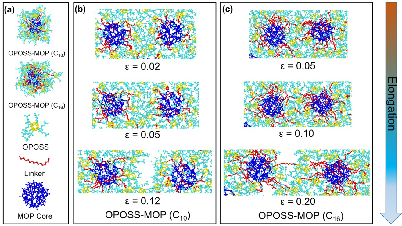 ����ԓ�F���ɢ�䷽������e����С������ɢ�䣨SANS����С��X�侀ɢ�䣨SAXS���ֶα��״��Á�����SNPCs�Ķ༉�Y����OPOSS-MOP���܉�����r���܉��γ��|�ؾ���ı�Ƭ�������@Ӡ���ǣ�ԓ��Ƭ���ϱ��F�����͵ď����О飬����ģ����17.42 MPa�������e�����䪚�ص��ߜ��������о��߰l�F���w��B��OPOSS-MOP֮�g��ƽ�����x�hС�����挍�ߴ磬�Ķ��Ɣ�����w�в�ӣ�Interpenetration���Y���Ĵ��ڡ���ӽY���Įa���w���ڽ����ЙC�����w��MOP���Ⱥ��ⲿ��OPOSS朶ηֲ��^��ϡ�裬���˶���������ֲ���ϡ��̶ȣ��о�������˿��gռ���ʵĸ�����^�Ӵ��϶������U���˲�ӽY���γɵ�ԭ��OPOSS朶�֮�g��B�γɲ�ӽY����ĩ�˵�֦��OPOSS֮�g�o������ã��ɴ˶��a���Ļ��iЧ��������OPOSS-MOP������ƵľW�j��Y�����M���x���䪚�ص����W���|���D2����