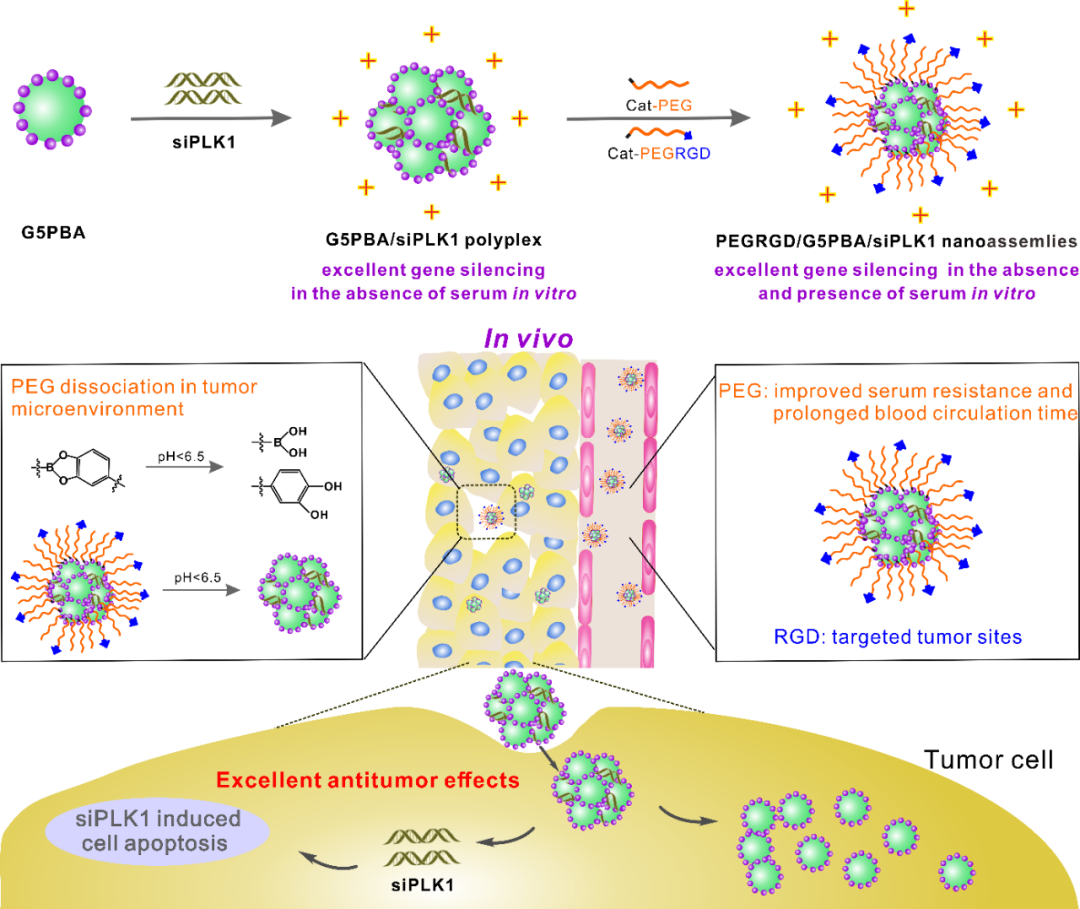 ���ڴˣ��Ϻ���ͨ��W�t�WԺ�����ʝ��tԺ�Ϻ����[���о������������P����������c����ҵĄ��������n�}�M�����һ�N�µIJ����ľۺ�����氱����PEG���Բ������ȿ�����߾ۺ���/siRNA�ͺ����Ѫ�巀�������ֲ�Ӱ����DȾЧ�ʣ��ڱ����ᣨPBA����ĵ�5����G5���۰�������PAMAM����֦�����ӣ�G5PBA�����������������-PEG�ۺ������PEG��Ę������/siRNA�{�M�b�w����Ѫ������Ч���fsiRNA ���D1����
