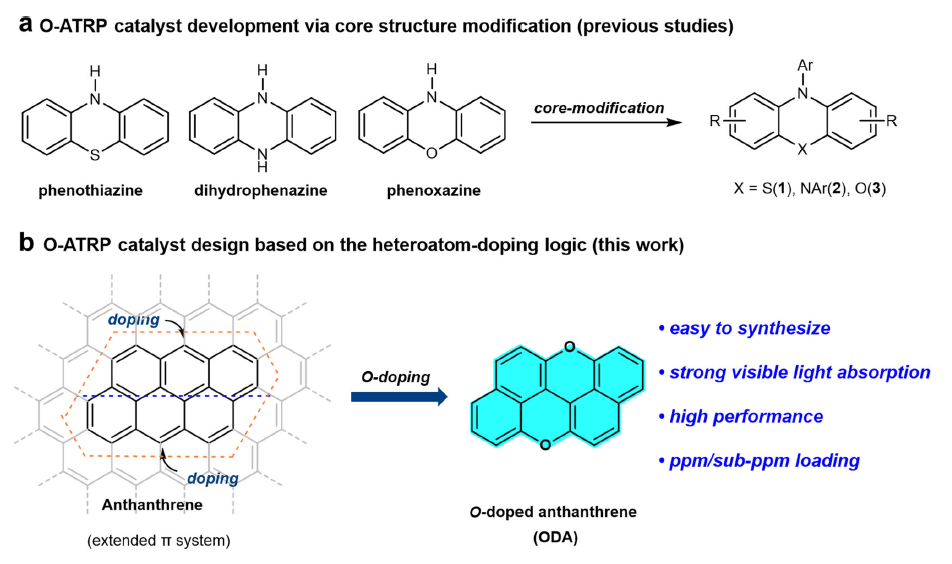 �mȻ����F(xi��n)����ɫ�F(tu��n)���Եõ�һЩ�ڿ�Ҋ(ji��n)��^(q��)���õĹ��������D1. A��ʾ���������������l(f��)�F(xi��n)���@Щ�Y(ji��)��(g��u)��������ղ����ڿ�Ҋ(ji��n)��^(q��)���@Ҳ�ܿ����nj�(d��o)�´�������һ���^���ԭ��֮һ�������һЩ�n�}�M�Lԇ�������ķ�����?q��)�������Q����������������(qi��ng)������(du��)��Ҋ(ji��n)������գ����ĽY(ji��)����(l��i)��������(qi��ng)���t�ƶ�ʮ�����ޡ��b�ڴ���ԓ�F(tu��n)�(du��)������ҕ�@Щ�����ĽY(ji��)��(g��u)�r(sh��)�l(f��)�F(xi��n)����ij�N���x�����D�����N���ĹǼ�Ҳ��ҕ�����N��O��S���s�a(ch��n)�����(l��i)���ڳ�Ҋ(ji��n)��ʯīϩ���s������O(sh��)����ͨ�^(gu��)�����s��Ԫ���h(hu��n)���N��Ҳ�S���l(f��)չ��һ�(l��i)�^��ͨ�õ��ЙC(j��)��������O(sh��)Ӌ(j��)˼·����D1. b��ʾ��ԓ�F(tu��n)�(du��)�xȡ���첢����h(hu��n)ĸ�w��Ȼ���sԭ�����ϵ����N�Ё�(l��i)�M(j��n)һ���{(di��o)��(ji��)�����Ĺ�����������߀ԭ���|(zh��)����K�Y�x�������s�첢�죨ODA���@һ�Y(ji��)��(g��u)���l(f��)�F(xi��n)ODA��������������ڿ�Ҋ(ji��n)����{(l��n)��^(q��)����������ղ��L(zh��ng)��Ħ������ϵ��(sh��)��455 nm�����_(d��)2.4x104 M�C1cm�C1���@һ��(sh��)�ֽӽ��鳣Ҋ(ji��n)�Ĺ����fac-Ir(ppy)3��10�����������^��ƥ��Ĺ�����߀ԭ��������K���ɹ���(sh��)�F(xi��n)�˿�Ҋ(ji��n)���µ�ppm���������µğo(w��)���ٿɿص�ATRP�ۺ���