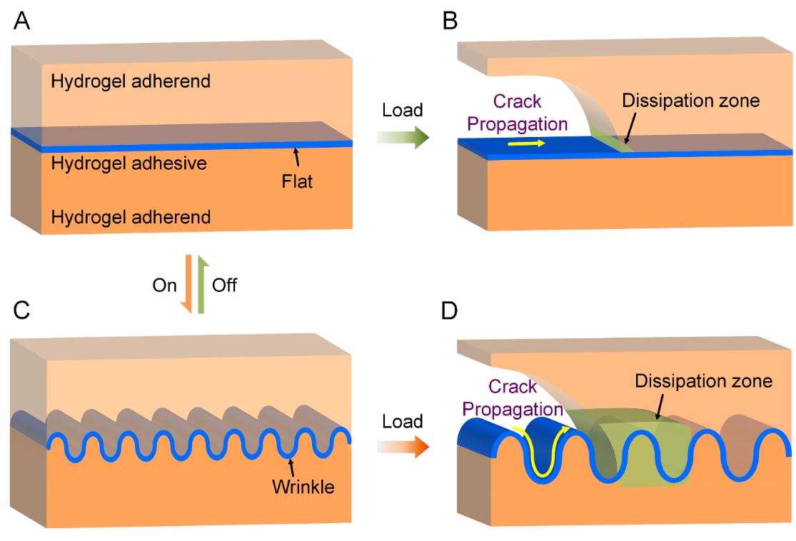 Qi Li, Ping Zhang, Canhui Yang*, Huiling Duan, and Wei Hong*. Switchable adhesion between hydrogels by wrinkling, Extreme Mechanics Letters, 2021.