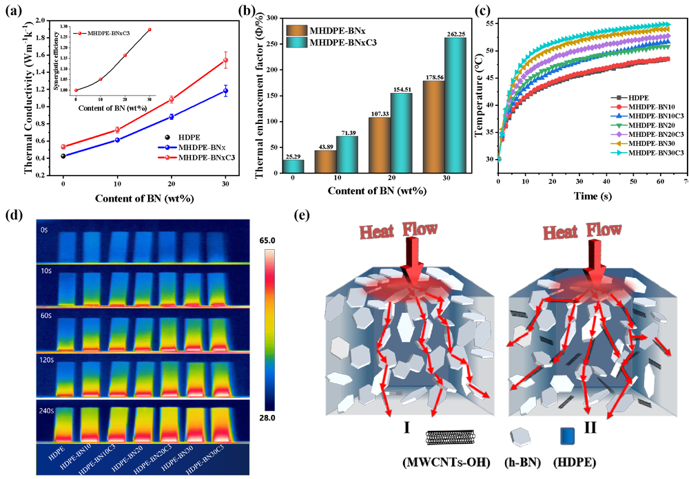 ��(f��)�ϲ��ό�(d��o)�����ܜyԇ�Y(ji��)����������Ԫ��(f��)�ϲ����������(n��i)������֮�g�ąf(xi��)ͬ���ö������^�ߵČ�(d��o)��ϵ��(sh��)����(d��ng)BN��MWCNTs������30 wt% ��3 wt% �r����(d��o)���ʞ�1.54 W.m-1K-1������ڻ��w��262%��