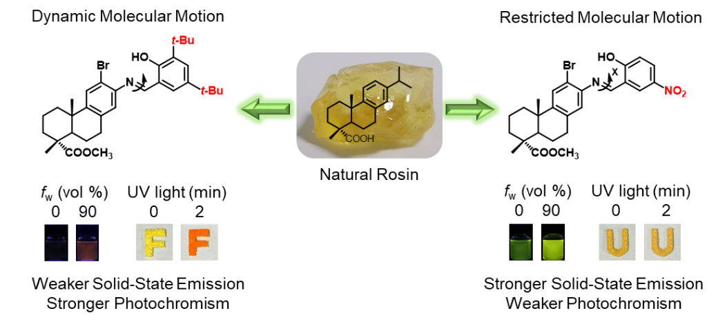 BioAIEgens derived from rosin: how does molecular motion affect their photophysical processes in solid state?