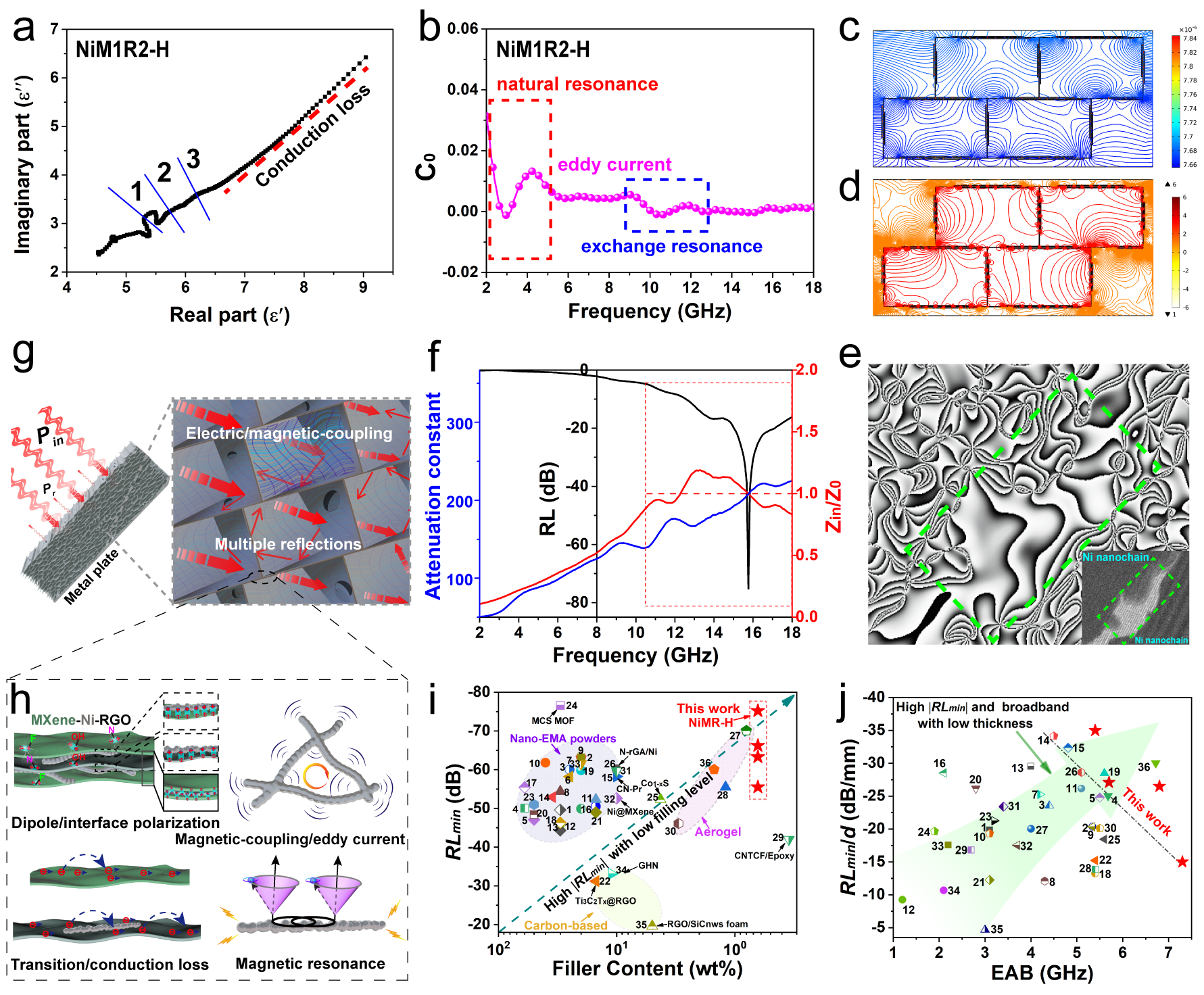 ����늴œp����Փ�����ݴ�W���L��Ժʿ�̈́���̫�����n�}�Mͬ���Y�϶�M�օfͬ�p�ĺ����S��������z�������ԣ����F늴Ų����յąfͬ�p��Ч������Ч�����������ڻ��w�ȵĈF�۬F�Ķ��ԘO�͵���������F�������������ܡ���Ti3C2Tx MXene��ʯīϩ��������Լ{�����ӿ���Ч�������c���ɿ��g�Ľ����迹��ƥ���ԣ��Y�������ך����z�Y�����ӵ�늴Ų��������w�ȵēp��·���Ϳ��g�����������늴Ų����������σȵĽ�늓p�ĺʹœp�ġ��Y��MXene��RGO��Ni�{��朶�M�ֵąfͬ�p�����ú����S��������z��늴Ų��Ķ��ط������ã��@��ĿǰMXene�������������������ͷ���p��(RLmin=-75.2 dB)�Լ����ղ���(EABmax=7.3 GHz)��