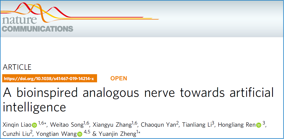 ǰ�����P�о�����朽ӣ�https://doi.org/10.1038/s41467-019-14214-x��Nature Communications��IF��12.121���п�Ժһ�^TOP��A bioinspired analogous nerve towards artificial intelligence