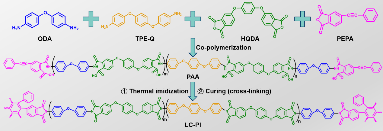�������I��W���W�c�����WԺ�܊μ���ڡ��Y��/���ܸ߷��ӏͺϲ��ϡ���SFPC���n�}�M�����OӋ�ϳ��˾��П�����Һ���О���Һ���^�g�c�̻��ض�ƥ���Һ�����������A��Ĥ��preLC-PI�����M���Ƃ�������ߌ���Һ������������LC-PI��Ĥ��preLC-PIIVĤ��IV̖�M�֣���Һ���^�g�ȹ̻�ʹ�併���Ҝغ��Ա�����Һ����������������^�����p�������ڷ�����g��ɢ�䣬�@��������PIĤ�ı����������ܡ�Һ���^�g�ȹ̻���LC-PIIVĤ����������������c���g�ˣ��������քe��2.11 W/(m·K)��0.32 W/(m·K)������Һ���^�g��̻���LC-PIIĤ��������0.77 W/(m·K)���c������0.15 W/(m·K)����ͨ�^���Hɢ��yԇ�c����Ԫģ�M�C����LC-PIIVĤ���Ѓ����Č�/ɢ�����������⣬�����ߌ���LC-PIIVĤ߀�߂䃞�������W���ܺ͟����ܣ������쏊�ȡ��������L�ʡ�����ģ�����g�ԡ��������D׃�ضȣ�Tg�����͟�ָ����THRI���քe���_119.0 MPa��50.3%��2.1 GPa��55.4 MJ/m3��262.4��C��329.3��C���ڸ���������ӵȸ߰l�����I��չ�F�����ڵđ���ǰ����