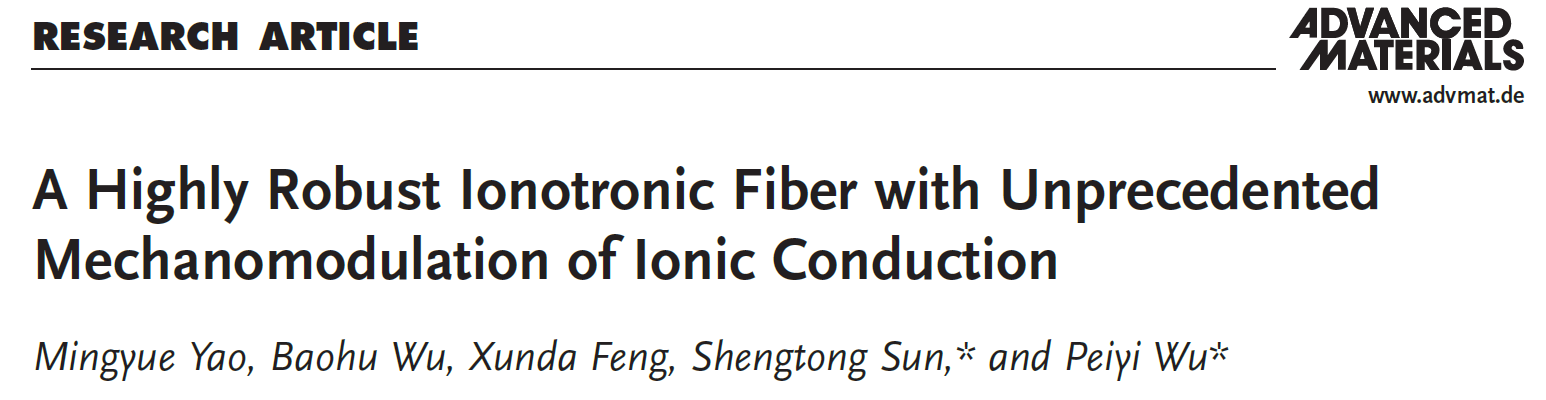 �����о��ɹ������ԡ�A Highly Robust Ionotronic Fiber with Unprecedented Mechanomodulation of Ionic Conduction�����}���l���ڡ�Advanced Materials����Adv. Mater. 2021, DOI: 10.1002/adma.202103755���ϡ��|�A��W���W�����c���﹤�̌WԺ�Tʿ�о���Ҧ���������µ�һ���ߣ����������ں��O��ͯ�о��T��Փ�Ĺ�ͬͨӍ���ߡ�