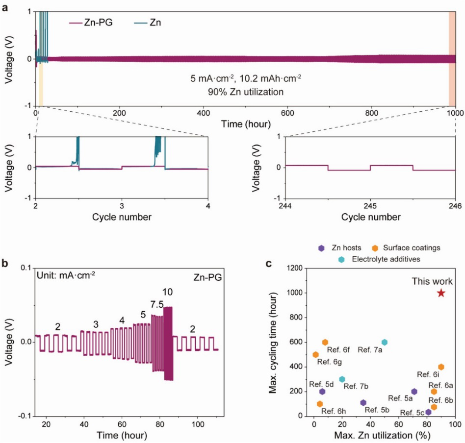 �@�(xi��ng)�����O(sh��)Ӌ(j��)��һ�N���͵ľۺ����zˮ�������\ؓ(f��)�O�����ܣ��ڹ��������5 mA cm?2�r(sh��)���\�����ʞ�90%����r�·�(w��n)������1000С�r(sh��)������ϵ�y(t��ng)��̽���˾ۺ����zˮ�Ĺ����C(j��)�����C����ͨ�^ͬ�r(sh��)��ֹH2O�B�Ҵ��M(j��n)Zn2+�x���w�ƣ��������\ؓ(f��)�O�ĸ��g���g�������⣬�ۺ����zˮ����Zn2+�ęM��e�ۣ������M(j��n)�˾����ҟo֦�����\���e����ˣ��ɴˮa(ch��n)����ȫ늳ر��F(xi��n)���^�ߵ������������ܶ��Լ��L(zh��ng)ѭ�h(hu��n)������