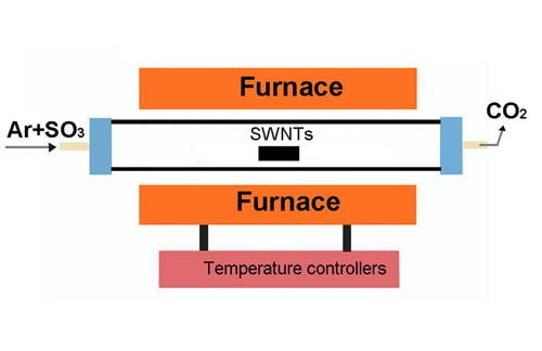 �������Ì�(sh��)�(y��n)�ҳ��õĻ��W(xu��)������e�b�ã��D1������400oC�ĸߜ���ͨ����g�Ԛ��w���Ķ���(sh��)�F(xi��n)�ˆαڹܵ��x���Է��x/�������c��(d��ng)ǰ�V����(b��o)��(d��o)����Һ���x�����x���Է���(y��ng)�����g��������̼�ܲ�ͬ���@�N������g�ķ����x���Կ��g�댧(d��o)�w�Ԇαڹܣ��D2���������g��̼���D(zhu��n)���������̼?x��)��w�ų��b�������������Ԇαڹ܄t�����������b�Ã�(n��i)�����������ڲ�ֱͬ�������İ댧(d��o)�w�ܾ����x���Կ��g���ã������nj���ֱ��С��1.18 nm�댧(d��o)�w�������gЧ�ʸ��_(d��)90%�����⣬������߀���гɱ���������������������Ҏ(gu��)ģ������������̼���Ɖ���С�ȃ�(y��u)�c(di��n)�����Ҏ(gu��)ģ���������Ԇα�̼�{���ṩ��һ��(g��)�µ�˼·��������W(xu��)����ϵ���P(gu��n)����߀�����ܶȷ��������x���Կ��g�M(j��n)������ՓӋ(j��)�㡣