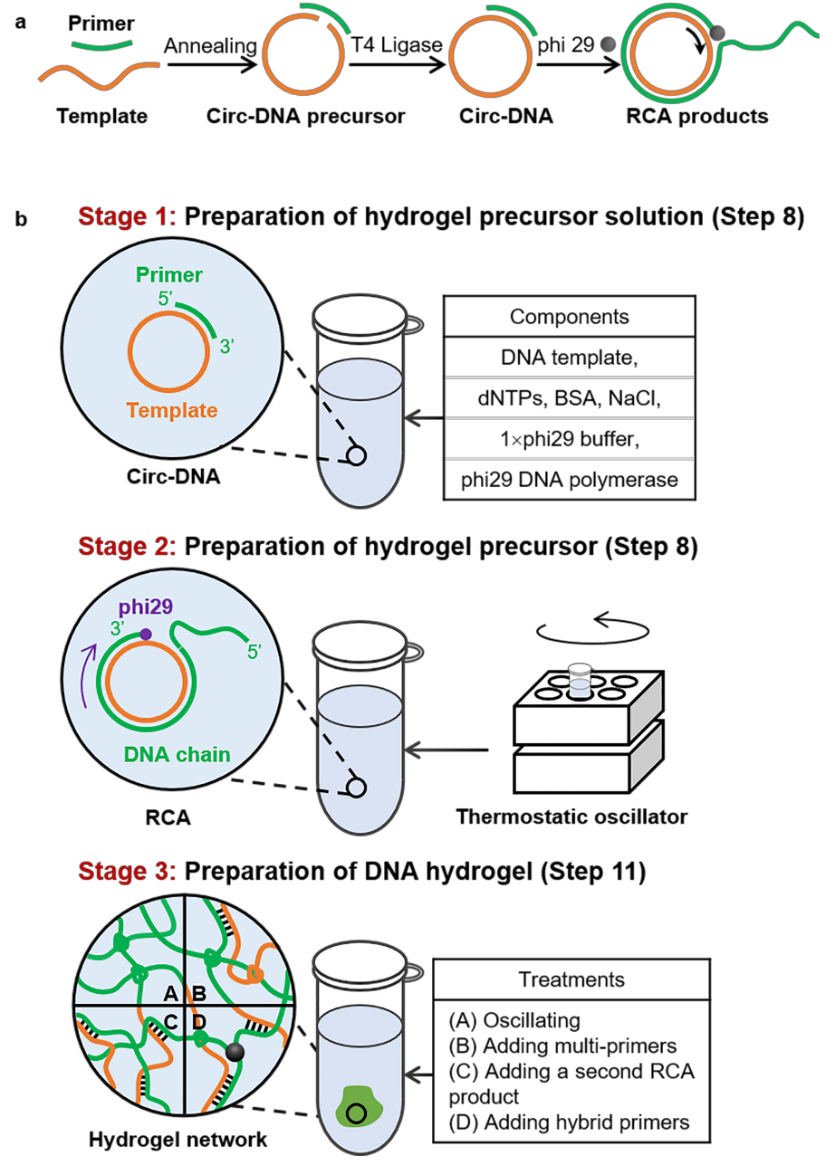 �����½��ڈF���DNA���﹦�ܲ����I���_չ��ϵ�y���о����������@Щ�о��Ļ��A�Ͽ��Y�˻���ø�ٝL�h�U����RCA����DNAˮ���z���ܲ��ϻ��Wϵ�y��RCA��һ�N�l���غ͡���Ч�������������ԵȜ�ø�ٔU���ķ�ʽ�ϳɳ��LDNA��朣��ڏ��s������h���о��з����ĺϳ�Ч�ʡ�RCA�H��Ҫ�����ĭh��DNAģ�壬��phi29 DNA�ۺ�ø�������£���DNA��������ÓQ�����F��DNAģ�廥�a��M�аٱ����e�ĔU���������@һ�������������LDNA��朿�ͨ�^��g�p�Y���༉����U������g�s���Լ�DNA��c���ܻ�Ԫ�s�����ķN�����ԣ��γ����Sˮ���z�W�j����������RCA�������ɳ��LDNA��朣�ͨ�^��g�p�Y���ã������˼���������DNAˮ���z��֮��ͨ�^���Ʒ����r�g���IJ��ԣ����F�˶�����U���������M�г���RCA�����a�����LDNA��朣�Ȼ���Գ���RCA�a���ģ���M�ж༉�������ڴ˻��A�ϣ��lչ�˻���RCA�a��DNA��g�s����������DNAˮ���z�����F�˹����g���|�ɼ������خ��Ը�Ч���@�����S�����ø�ٿɿ؟o�pጷš��Mһ����ͨ�^����{���ܻ�Ԫ������DNA��c���ܻ�Ԫ���s��������DNA�s��ˮ���z��ͨ�^�{׃���ܻ�Ԫ���s��DNAˮ���zչ�F�����صĹ�W���ŌW�����|�������@һ�ϳɲ��ԣ��Ƃ��˾��г�ܛ�����Ժʹ��Ե��s��DNAˮ���z�����F�������g�Ȼ���ğo�p�f�͡�