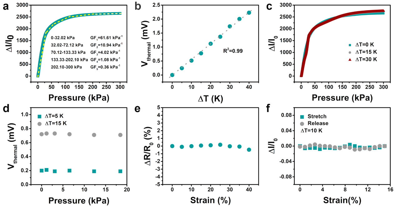 ���ڣ��п�Ժ�Ϻ������}���O�o�о��T����ȽȽ�о��T�c�п�Ժ����������^���о��T�Ⱥ������x���Y�������w�S��Ĥ�������r�ף����MOF Ni3(HiTP)2�����в��ϣ��OӋ�Ƃ������ԉ������ض��p���܂����������Ì��MOF�ĉ���Ч����ԓ���������Ԍ��F�������й��ܣ��Б�������300kPa������`���ȣ�61.61kPa-1���������Ì��MOF�ğ��Ч����ԓ�������ֿ��Ԍ��F�ضȂ��й��ܣ��`���ȣ�57.1��V/K�������ڲ�ͬ�ĸ�֪ԭ����ԓ���Ԃ��������л����ɔ_�ĉ������ض��p��֪���ܡ����⣬�����Y���w�S��Ĥ����ģ������PDMS�����c��ԓ���Ԃ������ڸ�֪�����͜ضȕr�����������ĸɔ_�����Լ��ɷ����wƤ�w�Ă�����Ќ��F�������͜ضȵ��o�B�c�ӑB�ֲ��ľ��ʸ�֪��