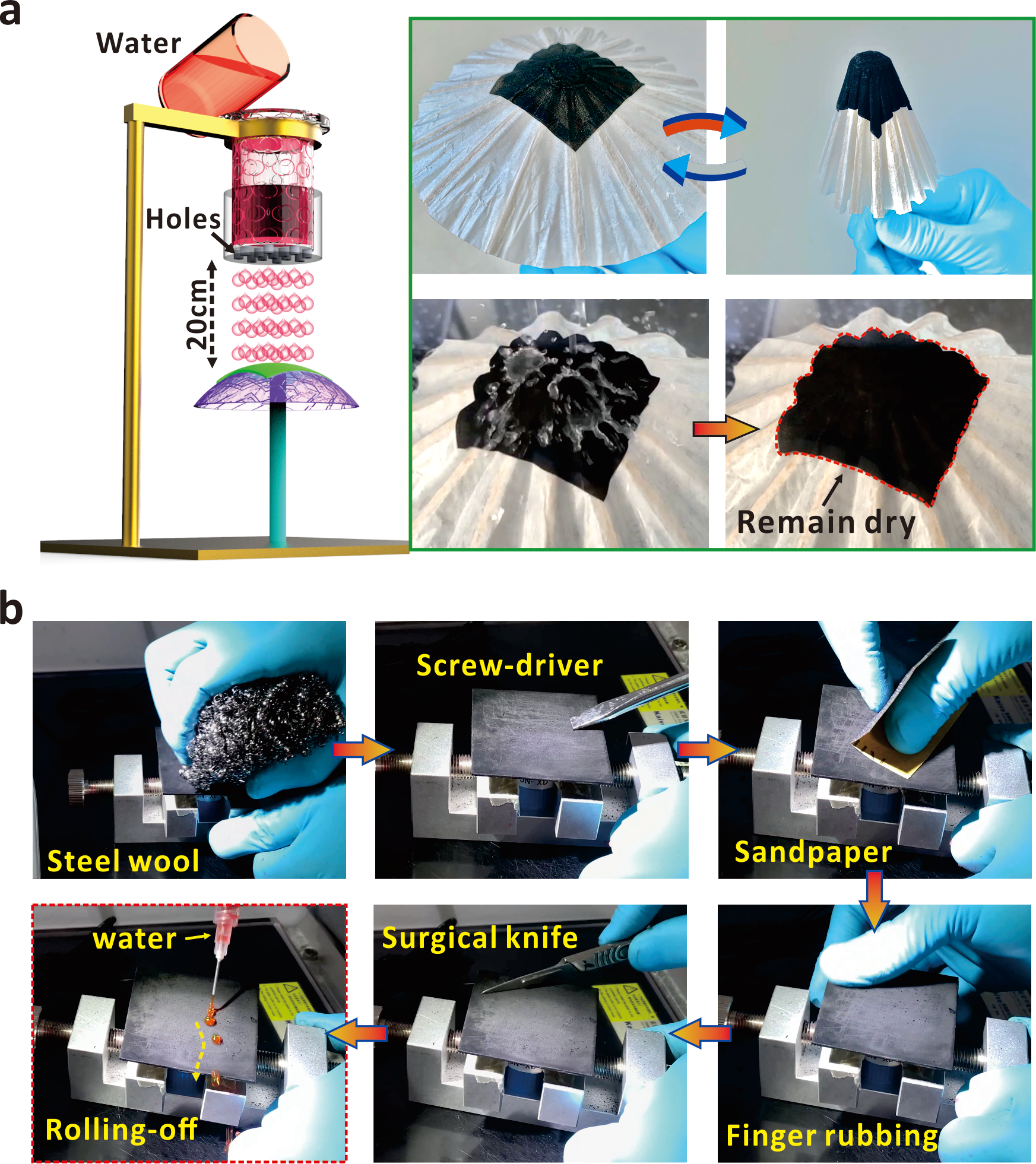 ���b�ڴˣ��n�}�M�����һ�N��(ji��n)�ε��Ƃ乤ˇ����(l��i)��(sh��)�F(xi��n)���и������Ե����Գ���ˮ��Ĥ��ԓ�����o(w��)����ه(l��i)�^(gu��)��ľ���(x��)�O(sh��)�䣬ֻ��Ҫ�����F�ṩ�Ĵň�(ch��ng)��Ϟ�T�������Ɍ�(sh��)�F(xi��n)��(w��n)�������Գ���ˮ����D1a��ʾ��ԓ����������Ҋ(ji��n)���Ż��ۺ�����PDMS���ʻ��F�ۣ�������Ӵň�(ch��ng)��ʹ���Ԅ�(d��ng)�����wë�������(d��ng)���ڶ����ұ���̎�ڰ�̻���B(t��i)�r(sh��)����͜غ濾2 h�������������Ϟ�T֮�ϣ��ڸߜؠT�����M(j��n)�п��ٹ̻����T�控��(l��i)�ĸߜ��ڿ��ٹ̻��wë�����ͬ�r(sh��)������(du��)�wë�����M(j��n)���g�̣��ҳ��e��̼�{���w����ԓ�^(gu��)���Е�(hu��)�cδ��ȫ�̻����Y(ji��)��(g��u)�����B��һ�w���Ķ���(sh��)�F(xi��n)��һ�w�����{�Y(ji��)��(g��u)�����@����ԓ�������܉�?q��)��F(xi��n)�C(j��)е�����W(xu��)��(w��n)���Ե��P(gu��n)�I֮̎����ԓ�^(gu��)���У�Ҳ��(hu��)�д����ļ{���w�������������������ژ�Ʒ���棨�D1b�������ų�ԓ�w���ڳ���ˮ���������������ã��������������������������е�һ�w���{�ӽY(ji��)��(g��u)���dz���ˮ��(w��n)���Եĸ���ԭ��