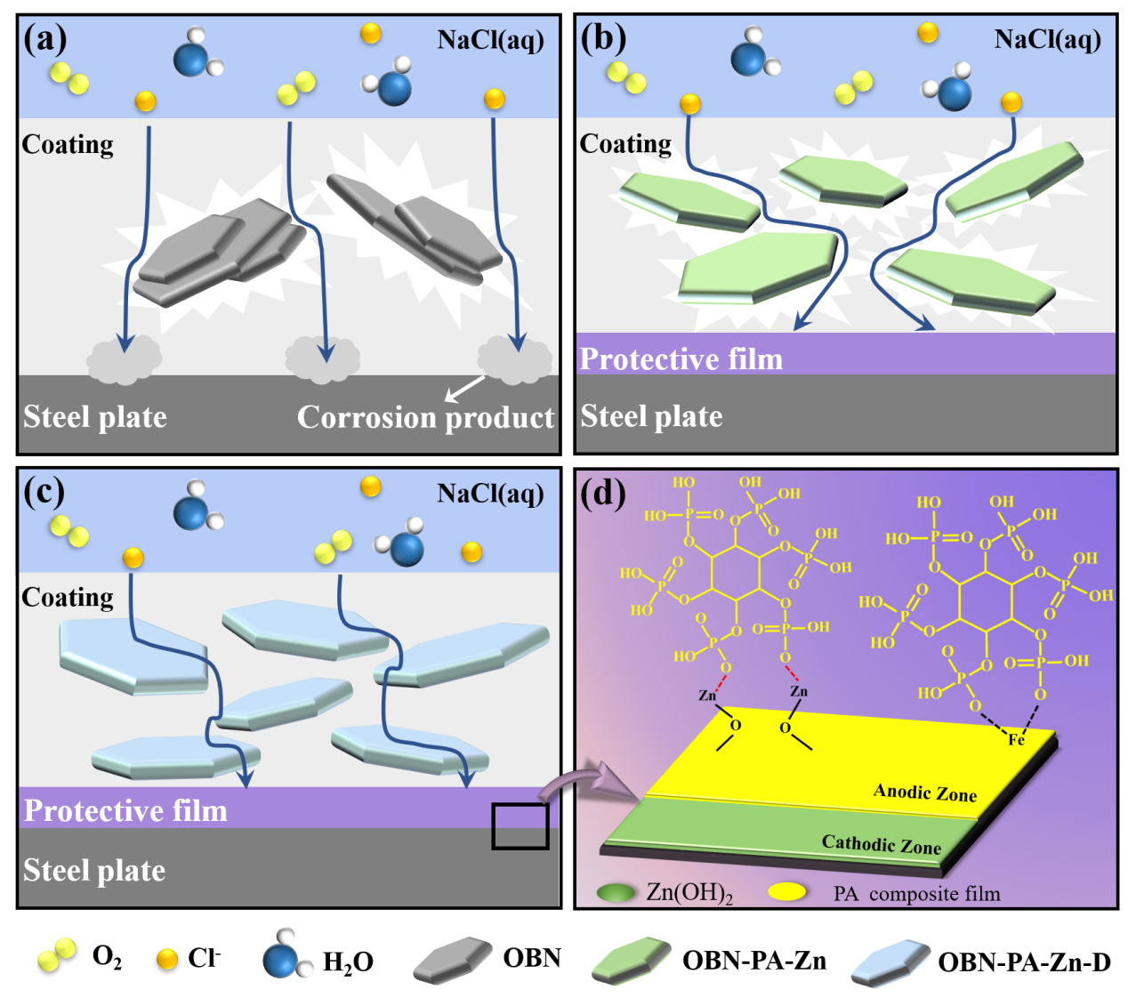 ᘌ�(du��)����ˮ�Է���Ϳ�ϵ��аl(f��)��������W(xu��)�����h(yu��n)�����F(tu��n)�(du��)�����u�����ܻ���h-BN��OBN���{��Ƭ��ֲ�ᣨPA����Zn2+ ���p�谷���ɹ��Ƃ���һ�N���͡���(ji��n)�̵�ˮ��O(sh��)BN-PA-Zn-D/WEP������(f��)��Ϳ�ӡ��ڦ�-��������£��ЙC(j��)-�o�C(j��)PA-Zn-D��(f��)����ؓ(f��)�d��OBN�ϣ���������OBN-PA-Zn-D�{��Ƭ�ķ�ɢ�ԣ��M(j��n)��������OBN-PA-Zn-D/WEP��(f��)��Ϳ�ӵ�����������ܡ������p�谷��OBN-PA-Zn-D�{��Ƭ�cˮ�Ԙ�֬���w�Ľ����������@����ߣ����p����OBN-PA-Zn-D/WEP��(f��)��Ϳ�Ӄ�(n��i)����ȱ�ݡ����⣬PA��Zn2+��ȱ���п��γ��^(q��)���o(h��)���ã�������ꖘO��ꎘO�ĸ��g����ˣ��ڶ��f(xi��)ͬ���������£��h(hu��n)����ˮ��O(sh��)BN-PA-Zn-D/WEP��(f��)��Ϳ�ϱ��F(xi��n)����(d��)�صķ������ܣ��^���y(t��ng)ˮ�ԭh(hu��n)��Ϳ�Ϸ�����������2��(g��)��(sh��)����(j��)��