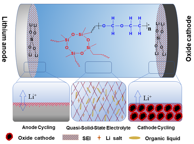 ���о�������һ�N����ľۺ���W�j�Y�������䑪�õ�䇽���늳ʹ̑B늽��|��QSE���С�����ۺ�����Si-O�I�ͽ��Y������������T��ꎘO��ꖘO���涼���γɷ������Թ̵�SEI�ӣ��M�b���Li|QSE|Li��Li|QSE|LiFePO4��Li|QSE|LiNi0.8Mn0.1Co0.1O2늳ص�ѭ�h�����Ծ����@����ߡ����⣬ԓ����ۺ���W�j�Y��������Һ�B늽��|�ē]�l���Ķ������늳صİ�ȫ�ԡ��蓽�s�ľۺ��サ�W�j�Y���阋�������ܡ��߰�ȫ�ԵĽ��ٻ�늳��ṩ����Փ���A�ͼ��g�ֶΡ�