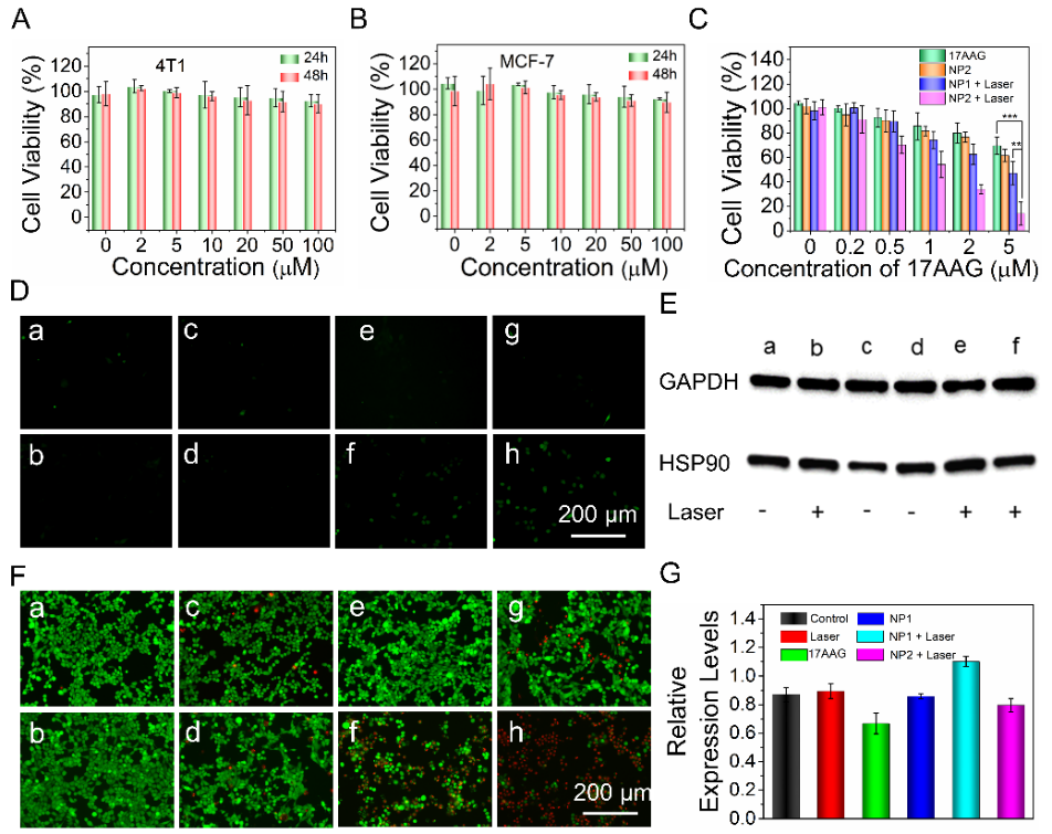 NP2�{�������ڼ���ˮƽ�������õ����������ԣ��D3A��3B�������^���ʣ�0.4 W cm-2�������������NP2�܉�غ����ز��a������������Ч�����[���������D3C��3D��������ӡ�E��������������о��������c�[�����������B��NP2�����������ጷ�17AAG����Ч����HSP90���_ˮƽ�����Բ����������ĵֿ��ԣ�ͬ�r�������������Ч���Ķ���ߜغ��Ŀ��[��Ч�����D3E��3F��3G����