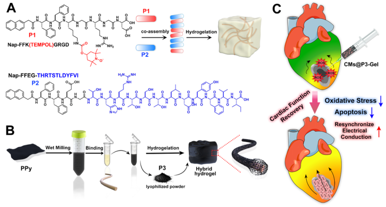 ���գ��Ϸ��t(y��)�ƴ�W(xu��)��С�ҽ����c���ӞI�������n�}�M�����ڡ�Composites Part B: Engineering���ڿ��ϰl(f��)�����}�顰An injectable and conductive TEMPOL/polypyrrole integrated peptide co-assembly hydrogel promotes functional maturation of cardiomyocytes for myocardial infarction repair�������¡�ͨ�^����(d��o)늾ۺ���������c��M�ֹ��M�b�����خ��ԽY(ji��)�ϣ���(g��u)����һ�N������������Č�(d��o)�ˮ���z(R&C-Gel)���n�}�M�ˆT�������M(j��n)�����P(gu��n)�������C���˹��M�bˮ���z���Ќ�(d��o)��ԣ��������ԣ��|׃�ԣ���ע���Լ�����נ�Y(ji��)��(g��u)������R&C-Gel��һ�N����ļ�(x��)��ֲ���d�w�����w�⌍��У�R&C-Gel����Ч������ļ���(x��)����(n��i)�Ļ��������p��ȱ��ȱ�Ǘl���µļ�(x��)������������(qi��ng)�ļ���(x��)����늂���(d��o)���տs���ܡ�ͬ�r�����ļ���������ģ����R&C-Gel����ԭ�������ļ���(x��)����NRCMs�����@�����M(j��n)���K�ޏ�(f��)���ؽ��Ĺ��ܣ���p�ټ�(x��)�����������ӿp϶�B���γɣ������Ѫ��?j��n)?sh��)���sС�w�S����e�ȡ�ԓ�о������K�M�����̶�܌�(d��o)�ˮ���z���O(sh��)Ӌ�͘�(g��u)���ṩ���µ�˼·���Ϸ��t(y��)�ƴ�W(xu��)����(zh��n)����ʿ�鱾�ĵĵ�һ���ߣ����Ŀ�õ��ˇ�����Ȼ�ƌW(xu��)���𡢏V�|ʡ���A(ch��)�͑�(y��ng)�û��A(ch��)�о�������Ї���ʿ��ƌW(xu��)������(chu��ng)��Ӌ���ȵ�֧�֡�