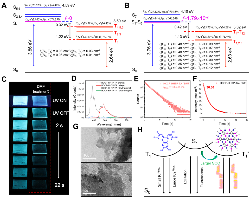 �Y����ՓӋ���Mһ����ʾ�˾������Ҝ���{����İl��C�ơ�������HHTP��S1�ܼ��ϵ���ʎ����f �ӽ�0�����ڽ��Y��HCCP-HHTP�д��������1.79×10-2��ͬ�r����S1�ܼ��ϣ�HHTP����25.65% 1(n����*)��74.35%1(������*����������Ә��ͣ�����HCCP-HHTP�Єt׃��33.64%1(n����*)��66.36%1(������*)����S1�ܼ��ϴ����������f�����܉�����͵IJ���H�C����HCCP-HHTP-TA���{����ğɹ�l��������ԭ��Ҳ�M����ISC�^���м��l�B�����S1��T1�S�w�ėl������������H��S1�B����T1�B��܉�����ͲҲ�dz����@�����磬HHTP��T1 ��܉����Ә��͵ı�����25.23% 3(n, ��*)��74.77% 3(��, ��*)������HCCP-HHTP�У���܉�����ͱ���׃��28.51% 3(n, ��*)��71.49% 3(��, ��*)������El-Sayed Ҏ�t��3(n, ��*)��25.23%���ӵ�28.51%���C����T1�ܼ��и���ļ��Ӆ��c����ij�ԥ��ͬ�r���cHHTP��74.77% 3(��, ��*)��Ә�����ȣ�3(��, ��*)��HCCP-HHTP������������71.49%�����ā��f��S1��Tn��n����܉���ı����ϵ��^�����a���^���SOC�������Mһ�����M���ؑB������T1�ܼ�����RTP�l�䡣���������^��HHTP����HCCP-HHTP��S1�Ĵ�ֱ���l��3.86 eV���͵�3.76 eV��T1�ܼ���������2.63 eV�����2.64 eV��S1��T1֮�g����϶(��EST)׃խ�����M��Sn�cTn���������Q�����磬HHTP����ESTֵ��1.22 eV����HCCP-HHTP����ESTֵ�t���͵�1.13 eV���sС����EST��������ISC�^�̣���S1�ϼ���ͨ�^�������D�����a����������ؑB���ӡ�