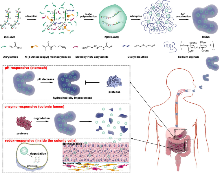���ڣ����u��W�D���t�W�о�Ժ�ڝ��������шF��ں���ˎ������ί��Y�c��ȡ�����Mչ��ͨ�^�_�lһ�N���ڸ߷��Ӽ{���z�Һͺ������}�Ķ༉푑��ͼ{�ͺ��� (MSNs) ���ƿڷ�����ˎ���ڽY�c�е���e�ͷֲ����ɹ����❢���ԽY�c�ף����M����ˎ���ڝ����ԽY�c���ί��е��R���D�������P�ɹ��Ԙ��}�顰Multistage-Responsive Nanocomplexes Attenuate Ulcerative Colitis by Improving the Accumulation and Distribution of Oral Nucleic Acid Drugs in the Colon���l����TOP�ڿ�ACS Applied Materials & Interfaces�ϡ����u��W�D���t�W�о�Ժ�ڝ����ڡ����������ڞ鹲ͬͨӍ���ߣ��Tʿ�о�����Ф�������G�G�������ڞ鱾Փ�ĵĹ�ͬ��һ���ߡ����Ŀ�õ��ˇ�����Ȼ�����Ŀ�����u�л�������Ŀ֧�֡�