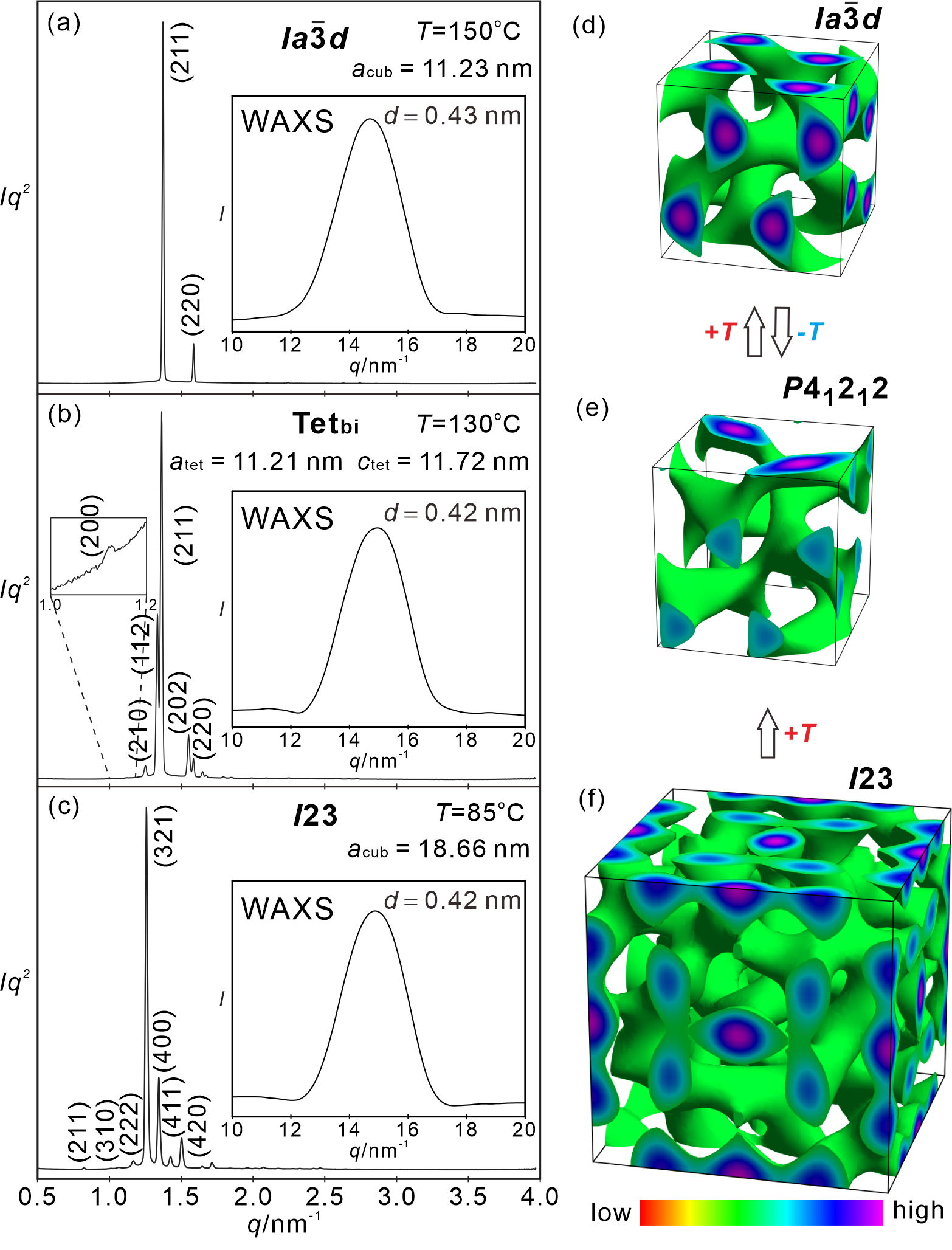 ᘌ������������l�a���C���@һ�ƌW���}��������ͨ��W���όWԺ�����ʡܛ���|���H���о����ĵ��о��ˆT���c�����վS��ؐ�����R��·�´�W�о��ˆT���������ù���ܛX�侀ɢ��(RSoXS)�о��˷����Զ�צ�ͷ����S�ض�׃�����ԽM�b�О飬�Ķ��ķ��ӌ�����������S�wϵ�г��������Ե��l�γəC�������ڷ����Զ�צ�ͷ��ӱ����IJ����Q�ԣ����ԽM�b�Y���S�ضȽ�����u�a���������������@һ�wϵ�����ⳬ�������Ե��l�a���ṩ��һ���^�ѵ�ƽ�_��ԓ�����о���һ�N�����Զ�צ�ͷ���(�D1a)�ԽM�b�О�Ĝض�푑��ԡ��о��ˆT���������˲�ʽ�������ᷨ�����ӵ��S����Y���M���˳�����̽��(�D1b)���Mһ�������ڳ�ҎС��X�侀ɢ��(SAXS��12keV)����ͬ�ضȵ��ԽM�b�Y���M�����о����Y���l�F���S���ضȵ�׃�����ԽM�b�Y���ķ����������Y��(�D2a,d)�������ķ��Y��(�D2b, e)׃������(�D2c,f)�����Y����ֵ��һ����ǣ�DSC�����������������ȷ��Ӕ�Ŀ�Ȕ����@ʾ�������������Y���������ķ��Y����׃���������׃���@�N�B�m��׃���^�����о������������l�a���C�Ƶ����Ì���