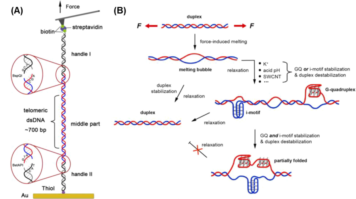 ����һЩ�������^���y�Բ��ú˴ż�X-�侀�Y(ji��)������ȷ����M�нY(ji��)��(g��u)�����ľۺ����Ʒ�wϵ��ͨ�^���Æη������V�������Y(ji��)��CD�Ȃ��y(t��ng)���g(sh��)�������^�õ��о��@Щ�ۺ������γɵĸ��Y(ji��)��(g��u)����ӑB(t��i)�ݻ��^�̡�ԓչ�����·քe��B�����о��M������AFM-SMFS�����о������؏����е��L朶���DNA�ĸ��Y(ji��)��(g��u)�����������T���µĽY(ji��)��(g��u)�ݻ��C�ƣ�ӑՓ��DNA��Ʒ�Ƃ��cż(li��n)������(chu��ng)���ɹ��_չ���P(gu��n)������Ҫ�ԡ����p朶���DNA�wϵ���l(f��)�F(xi��n)�Cе�������|�l(f��)�p朶���DNA�������Լ����Y(ji��)��(g��u)���γɡ�ֻ���ڃɗl朶��քe�γ�G-����w��i-motif�Y(ji��)��(g��u)�ėl���£��@Щ����w�Y(ji��)��(g��u)���ܷ�(w��n)�����ڣ��p����DNA���ٴΏ��Բ��ܱ���Ч��ֹ��Nucleic Acids Res., 2020, 48, 6458������Һ������K+���α�̼�{�ܡ����ԗl�����Ǹ���G�Ķ�Ƭ�ξ������ڌ��F(xi��n)��ƽ����p������������Y(ji��)��(g��u)�γɵķ����D(zhu��n)�ƣ��D6���������о����������DNA�Y(ji��)��(g��u)���{(di��o)���ṩ��һ�N�µ�;����˼·��