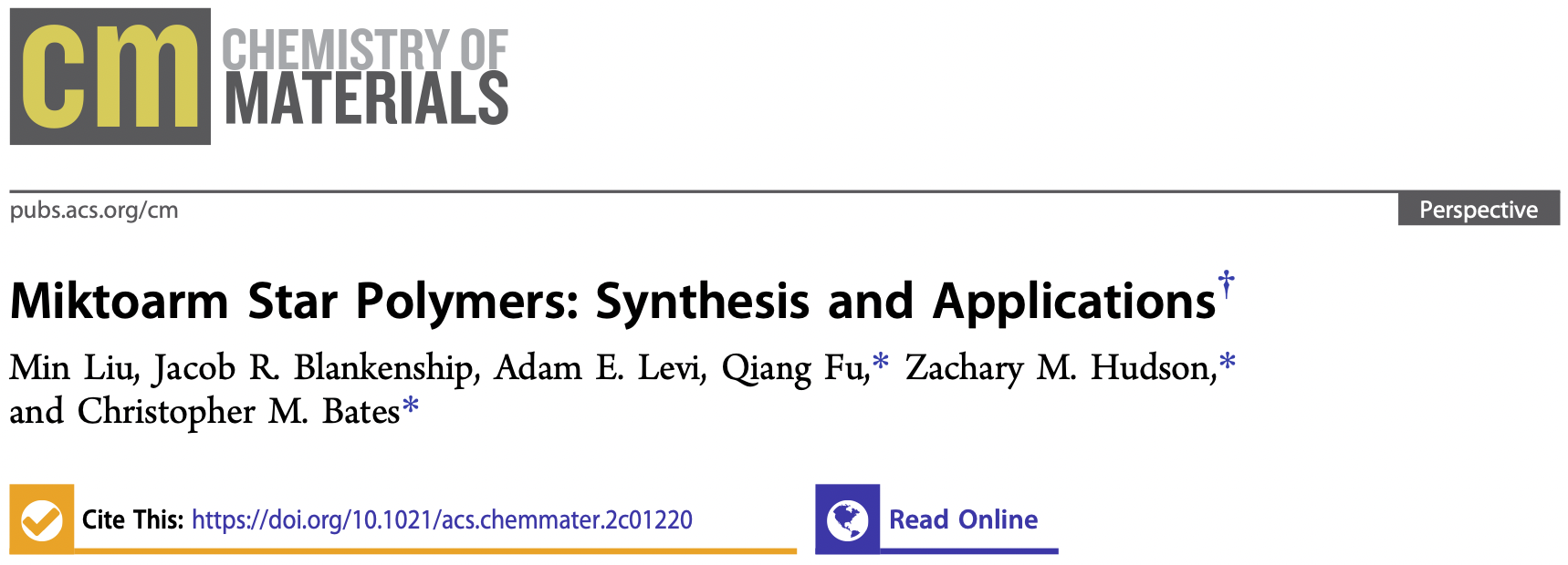���գ�Ӣ�ٸ炐�ȁ���W��UBC��Prof. Zachary Hudson,���ݴ�Wʥ�Ͱ�����У��UCSB��Prof. Christopher Bates, �Լ�Ϥ��Ƽ���W��UTS��Dr. Qiang Fu���ˑ�����B���s�����ξۺ���ϳɵĚvʷ�����������о��Mչ�����������µ��OӋ���ԡ��ϳɼ��g�����ⳣҊ���Ƃ������M�и��������^���s�����ξۺ�����ˎ���f�͡��{�Y����Ĥ�Ƃ䡢�������������ԏ����w�ȷ���đ��ã��������ԓ�I��δ���о������ͻ������͙C�������PՓ�����}�顰Miktoarm Star Polymers: Synthesis and Applications���l������Chemistry of Materials����