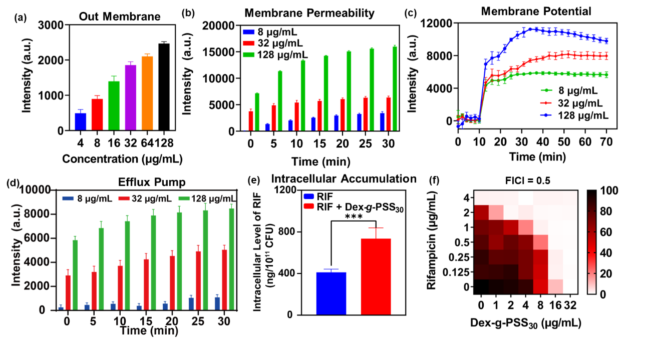 ͨ�^����ˎ��ˎ�U�����ӗU����MDR-AB����������Ĥ����Ĥ��Ĥ�λ�Լ����űõęz�y������Dex-g-PSS30�܉�Ӱ�MDR-AB����Ĥ����Ĥ��Ĥ�λ�Լ����űã��M�����ӿ���������ƽ��MDR-AB�Ȳ��ķe�ۣ��Ķ�ʹ��Dex-g-PSS30�c����ƽ��RIF�����Ѕfͬ��FCI = 0.5������MDR-AB��Ч����