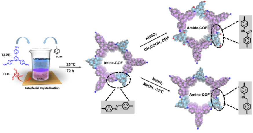 ����������һ���Ҫ��Ĥ���ϣ��ڼ{�V�����B���I��l�]����Ҫ���á�Ŀǰʹ�õľ�����Ĥ���������������c����Óˮ�s�۶��ɣ��Y�����^��o�����Ĕ������ߴ���С�y�Ծ����{�أ�Ӱ��˾�����Ĥ�Ă��|���������x�x���Ե��Mһ����ߡ����գ��Ї��ƌWԺ�Ϻ��ЙC���W�о����w���n�}�M��ACS Appl. Mater. Interface�ϰl��������Polyamide Covalent Organic Framework Membranes for Molecular Sieving�����}���о�Փ������ԓ�����У��о��ˆT�OӋ�Ƃ���һ�N���;�����Ĥ��Amide-COF�����������w����һ�N��������Y���ĽY������ۺ����������r�ЙC�����COF���M�ɣ���Ԫ�g�˴��������I���B�������I���γ���ԓ�n�}�M�����_�l��һ�N����COF�����D���������F��J. Am. Chem. Soc. 2022, 144, 1138-1143.�����Ȳ��S���Ҹ߶�����Ŀ�ʹ��Amide-COFĤ���F�����܄��B�Ժ͌��ЙCȾ�ϵĸ߽����������⣬������������Ԫ֮�g�^���Ě��I����ã��c������ͬ��Ԫ��ͨ�^�����I��Imine-COF���Ͱ��I��Amine-COF���B�ӵ�COFĤ��ȣ�Amide-COFĤ�ă���߀�w�F�����ɫ�ęCе�������ڿ��̭h���µķ��x�����ԡ���ˣ��Y���� COF �;�����������Y�������c���|��������COFs�����ɞ���������ܷ��xĤ������Ĥ���ϡ�