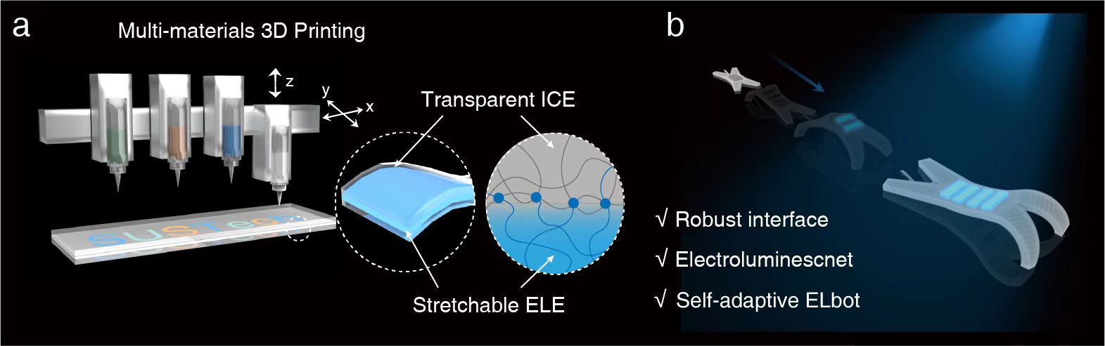 ���Կ�����l�����������ƄӸ��������I��Ŀ��ٰlչ������ɴ�����ӡ��@ʾ���ͷ����C���˵ȡ�Ȼ�������y�z�Wӡˢ���{���Dӡ�ȼ��g��������°l�������_�l����Ȼ���R�����E�ࡢ�ĕr�á��ɱ��ߡ�һ�w�������y���������գ��Ϸ��Ƽ���W�����F��ڡ�Nature Communications���ϰl�����¡�Integrated 3D printing of flexible electroluminescent devices and soft robots���������һ�N����īˮֱ����DIW����3D��ӡ���g������һ�w���OӋ����������������°l��������ܛ�w�C���ˣ����F���l��������ȫ��ӡ���졣