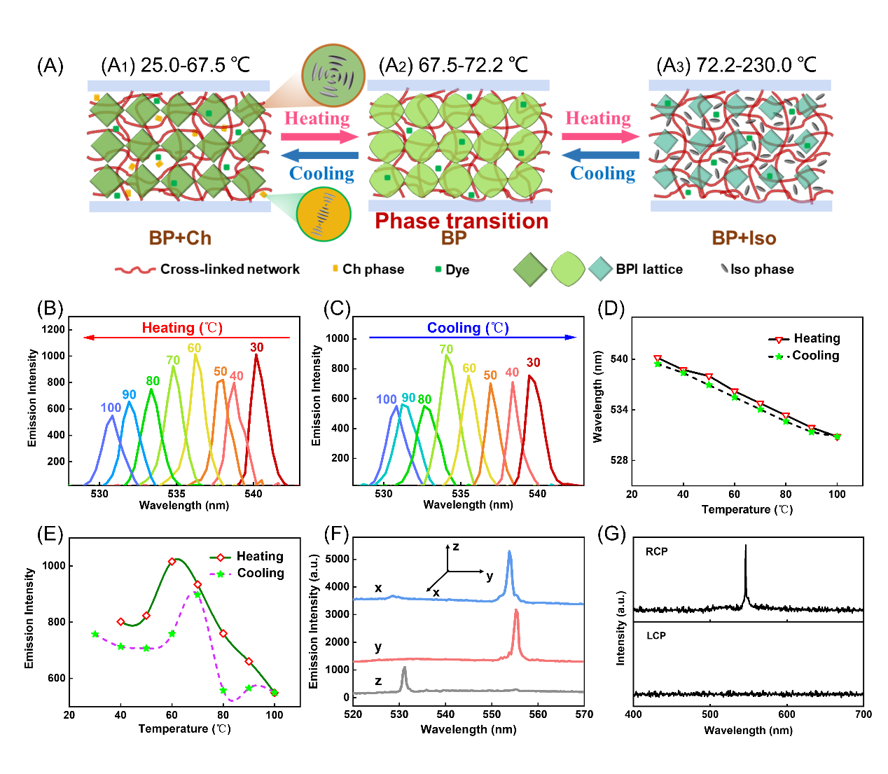 �{��Һ��(BPLCs)���䪚�ص����ڽY������̼�푑������r���ؘ��Ե����c�����Ѓ����Ĺ�W���ܣ��ڂ��С��@ʾ�����εȷ���������đ���ǰ�����{��Һ�������䎧϶խ����W���܃��������ڵ��ֵ��������Ŀǰ�{��Һ�����������о���Ҫ�۽������̼��£��磺�⡢늡��ᡢ���ȣ����Ⲩ�L�Ŀ��{���ԣ������{�༤���������ضȵ��о����Ҳ��㡣����BPLCsխ�Ĝضȴ��ڣ��������������Ĺ�����������3-4�档�ۺ��ﷀ���{�ࣨPSBP���wϵ�IJ����ѽ��O���،����{��Һ���Ĝضȴ�����500�ȣ���Ŀǰ��������{�༤����������������^36 �档���{��Һ�������c���{�༤������Ĵ������c���þۺ��ﷀ���{���wϵ�����m�ľۺϳ̶ȣ�ͨ�����wϵ�ɾۺ�Һ���M�� <10 wt%�����P���������ĽY�������ԣ�����BPLCs��϶�c�ɹ���̖֮�gƥ���ԵIJ��������Ҳ�������·f�{�����������İlչ��