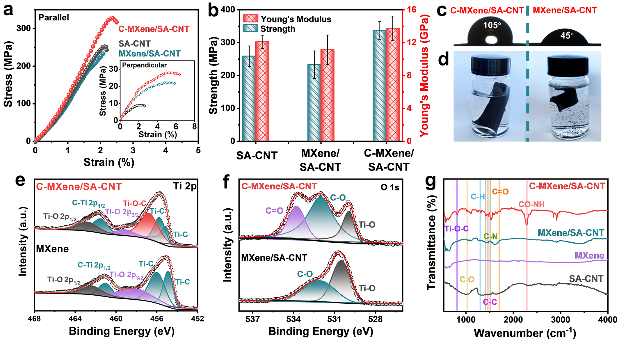 ̼�{�ܹ��еĸߌ���Ժͳ�ȡ��Y�������ĵͽ��|���ʹSA-CNT��Ĥ��ƽ�кʹ�ֱ�����늌��ʷքe�_��34144 S/m��4970 S/m��16 ��m���SA-CNT��Ĥ��ƽ����Pa-SE���ʹ�ֱ��Pr-SE��������늴Ų�늈������늴�����Ч�ܣ�EMI SE���քe�_��42 dB��22 dB���@��������Ȟ�40 ��m����V�Ƃ�MWCNT��Ĥ��13.5 dB��SA-CNT��Ĥ�ĸ������^�Y���������c�������P��늴��������ܣ��@�����ڌ��H���Õr���������ľ����Ժͷ����ԡ���Ȥ���ǣ�C-MXene/SA-CNT��Ĥ��늴��������ܵĸ����Կ���ͨ�^���κͿ�Ҏģ���Ľ��n��������MXene�ĺ������{����MXene�����քe���ӵ�18��45 wt%�r��Pr-SEֵ���ӵ�35��58 dB��Pa-SEֵ���ӵ�46��60 dB��5 ��m���SA-CNT�Ƃ�ďͺϱ�Ĥ��MXene������63 wt%�r��Pr-SSE��Pa-SSE�քe�_��122368 dB·cm2·g-1��128680 dB·cm2·g-1�����⣬��Ĥ߀���F���ڸߜظߝ�h�����Cе׃�κͳ����l�ʷ����ȵă�����������늴��������ܡ�