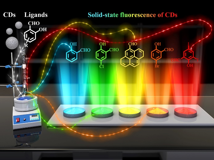 ���ڴˣ����ݴ�W�R˼����ڈF��l����CDsͨ�^�Y�����_��ˮ��ȩ(SA)����w���ܻ���������⼤�l���F��ɫSSF���ԵIJ��ԡ�Ԕ���Y�������������w��̼��֮�g�γɵķ��ӃȺͷ����g���I���M�˾ۼ��B�ļ���ݗ�䡣�Mһ��ͨ�^���εظ�׃�������w�ϵĹ��܈F�����Ԍ��F���{���t��(������300 nm)���B�mȫɫSSF CDs����W�C��̽�����������������w�ɹ����c̼�˹�ܗ�s�����γ��µİl���ܼ��������c�˰l�䎧϶���{�ء����⣬ȫ��ɫSSF����Ĺ�W�C�����Ƃ䷽�����ڲ�ͬ��͵�CDs����һ�������m�����˹����Uչ�˹̑B�l��CDs���ɿغϳɲ��ԣ���ˌ����@һ���d�I�������Ҫ���x��ͬ�r��AIEgens-CDs�Ĺ�W���Ա����ژ���3D��ӡ�D���������O�䣬չʾ�˹̑B�l�� CDs�ڌ��H�����еľ�������������Solid-state Fluorescence from Carbon Dots Widely Tunable from Blue to Deep Red through Surface Ligand Modulation�����}�l����Angew. Chem. Int. Ed.�ϡ�