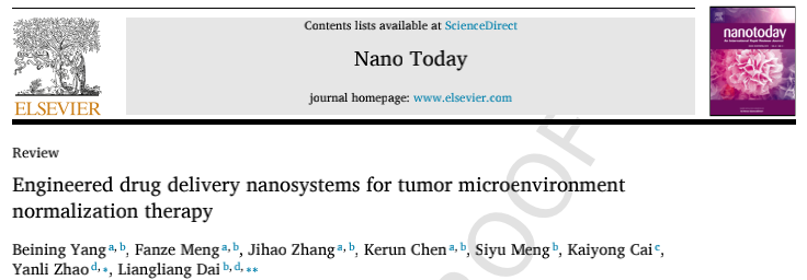 Engineered drug delivery nanosystems for tumor microenvironment normalization therapy. Nano Today 2023.