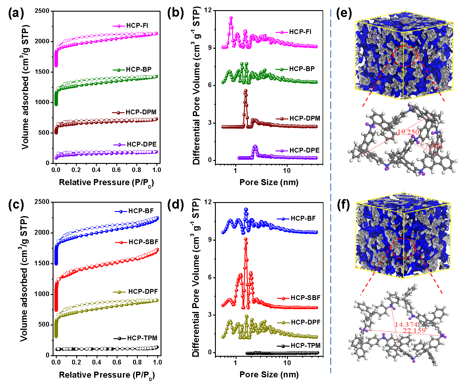 ���ڴˣ��A�пƼ���W�T�ض����ڈF����þ������{�Y�����ԵĘ�����Ԫ������ԓ�F꠰lչ���܄��������ԣ�Sci. Adv., 2017, 3: e1602610�����Ƃ��˾��п��{�Y����HCPs���D1a����ԓ�����о��˘�����Ԫ�Y�������c�䌦����HCPs�Y������߉�����惦����֮�g�Ę�Ч�Pϵ���о��Y��������ͨ�^�p�٘�����Ԫ�е���N��L�����ӽY����ܗ�ԿɌ��F��Y�����Ե����ӣ��D1b���������Ƃ��HCPs�����؏ĵͿ�϶�ʵĿ����u��׃�ɸ����ľW�j�Y�������F��BET�ȱ���e��37-2368 m2 g-1�Ϳ�1.83-7.28 nm�����ȵ��{�أ��D2����ͬ�r���@Щ���ϱ��F�������ĸ߉�����惦���ܺͽY�������ԡ���273 K/5-100 bar�yԇ�l���£�������������9,9''''-�ݶ��̣�SBF����HCP-SBF�ͻ������������ı������飨TPM����HCP-TPM���քe���F��206 cm3��STP��cm-3��0.296 g g-1����199 cm3��STP��cm-3��0.112 g g-1���Ŀ�ݔ�ͼ���惦�����D3�����߂���ANGϵ�y�Б��õĝ�����ԓ����������HCPs�Y�����¶��ϵĶ��ƻ��OӋ���ڸ߉�����惦�I��đ��ðl�]��Ҫ��ָ�����á�
