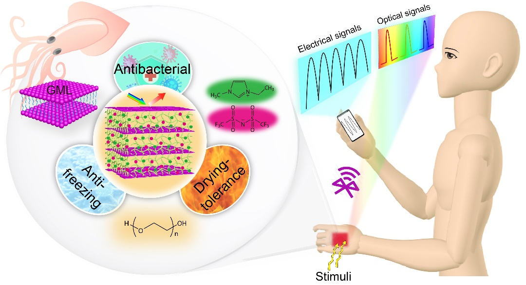 ���~�����w�����䵰�ӴνM�b������{�Y�����c�����l���������÷����ض��Ⲩ,��ҕ�X�ϳʬF���ɫ��ͨ�^ģ�M�@�N�Y�������B������W����҈F꠵�ţ�ı����������ȫ��Ч�V�V�Ŀ�����-�¹���������ԽM�b��ģ�M����~�Ĺ��Ӽ{�Y�����OӋ��һ�N�ɸ�Ч�������ֿ����ӭh���Ķ�ܽ���ʽ����-�x��Ƥ�w�����ϟo������ģ�K�����F�ˌ����ش̼��Ĕ��ֻ�/��ҕ����֪������Squid-Inspired Photonic-Ionic Skin with Anti-Freezing, Drying-Tolerance, and Antibacterial Abilities for Wirelessly Interactive Multi-Sensing���l���ڡ�Chemical Engineering Journal���ϡ����µ�һ����ԭ����B������W�����WԺ��ʿ�����������F���I���ں��ϴ�W���όWԺ��