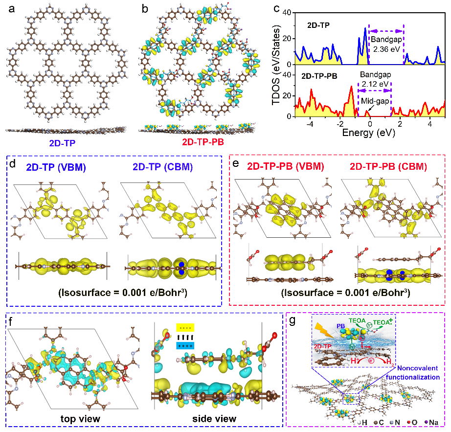 ������������W�����ؽ����n�}�M��ǰ�ڹ������A�ϣ�J. Am. Chem. Soc. 2017, 139, 11666; Adv. Mater. 2018, 30, 1705401; Angew. Chem. Int. Ed. 2021, 60, 25381; Angew. Chem. Int. Ed. 2022, 61, e202113926; Angew. Chem. Int. Ed. 2022, 61, e202203327.�������һ�N�����ķǹ��r���ܲ��Ԍ��F�˸��|�����߷�ɢ�����Ե�2D-TP���Ƃ������Y����ՓӋ�������ˮ���ķ������Ŷ����c���ӣ�sodium 1-pyrenebutyrate��PB������ͨ�^�ǹ��r��-�������������Ӡ��߽Y��CTF�еĶ��ƽ���ۺ�������ͬ�r����ؓ늺��ų�Ч��������ĥ�o���ij��m��������������ʹCTF��ˮ����Ч���x��Ό�/�ٌӶ��S��ຸ߷��Ӽ{��Ƭ��2D-TP-PB�����D1��2�������õ��ķǹ��r�������Ķ��S��ຸ߷��ӿ��Ըߝ�ȵķ�����ɢ��ˮ������ͨ�^���ε��������̎�����Ƃ䲻ͬ�ܶȣ�5-15 mg cm-3���ij��p�����z���D3�����@Ҳ�Ƕ��S�߷��Ӷ���^�M�b�w���״Ό��F��ԓ�����z�����Mһ���ӹ����ؐ���Y�������W����Ĥ��ͬ�r���ǹ��r���ܻ�����߀����������������ӓ��sЧ�����Ƀ������S��ຸ߷��ӵ����Y�������F����a������������������������ʿ��_��1249 ��mol h-1��24980 ��mol g-1 h-1����420 nm̎����Ч�ʣ�AQY���_��27.2%�����^������ۺ����������D4����DFT��ՓӋ������������Ĺ������Դ�ڷǹ��r���ܻ��a���Ƚ�늈����Ӹ�Ч�����d���ӷ��x���D5����