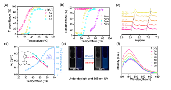 �о��ˆT��AAm��VPhDT����w��ͨ�^����ӳ�-����D���Ƃ���һϵ��UCST�͜�����AIE�ۺ���о�����ˮ����AAm-VPhDT���������Һ�О�Ͱl���О飨�D2����AAm��������F��ˮ���ԣ���AAm�cVPhDT֮�g�ď����I����ʹ�������ض������³ʬF���ߜ��ܽ⡢�͜ز��ܵ����R���ܽ�ض��О飨UCST�����@�N�ض�푑��Ե�朾ۼ�ͬ��Ӱ�����l���О飺�ۺ�����Һ�ڵ͜��¿��l�����������{ɫ���D2����