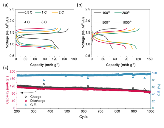 ԓ늳��ṩ����1.25 V��ݔ��ƽ�_늉��ͽӽ���Փ��110 mAh g-1���������D3a & b�������⣬PTMA�X�x��늳�չ�F�������ı������ܣ���8 C�ĸ߱��ʗl�����Ա�����Փ������81%�����ڳ��^800�εij���ѭ�h��ÿȦ�����pʧ�H��0.028% ���D3c�������⣬PTMA�X�x��늳�Ҳ���F����������ȼ���ܺͿ՚ⷀ���ԡ�ԓ�о����_�l�X���������������ܶȄ���늳ؼ��߰�ȫ�Դ��̓����վ�ṩ�·�����