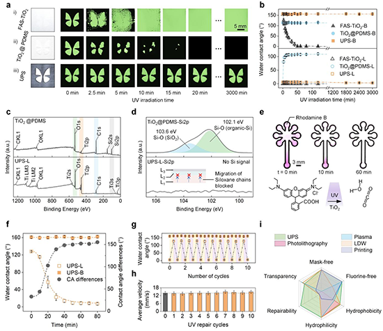 �������պ����W��ԁ÷�n�}�M�ܼ���Ĥ�Y���Ć��l��ͨ�^������g���ӽY����Ϳ�ӣ��OӋ��һ�N�����⾀�ķǾ����ԈD�����棨UPS�����D1���������⾀�ij���ˮ��������D�����ڸ��w�����Hˮ������⁼{���w���ı�����ԭλ�����������������TiO2�������UPS������ֿ��r�g��������Ҫ��ģ�ı������������߳��ɂ����������ϡ�UPS�ļ���Ĥ�ӽY���{���˃Ȳ�������朶��ڱ�����Hˮ����ˮ�^����w�ơ�UPS����ʹ���ܲ��������⾀��������Ч���γɈD���������_��ϵ�y��Һ�w�ĝ����О飨�D2�������⣬��ʹ�ڏ����⾀����50h��365nm��500 mW cm?2������Ǿ������Ա��ַ������D3�����@Щ�����⾀�ķǾ���D�����������δ�푪�������w���������B�������D�Q��ˮ�ռ����D4����