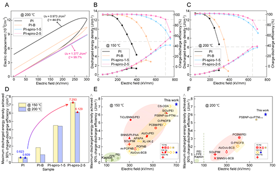 �D5. PI���������ۺ���ĸߜ������ܡ�(A)200����300 MV/m�µ�D-E�������yԇ��Ĥ��(B)150����(C)200���µă����ܶȺͳ���Ч�ʡ�(D)����Ч����90%���ϵ�����������ܶȡ�(E)150����200���¸ߜؽ��|(zh��)���σ������ܱ��^��