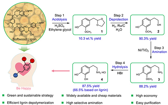 Figure 3 Catalytic conversion of lignin to dopamine hydrochloride.