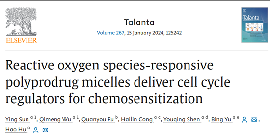 [1] Y. Sun1, Q. Wu1, Q. Fu, H. Cong, Y. Sheng, B. Yu, H. Hu, Reactive oxygen species-responsive polyprodrug micelles deliver cell cycle regulators for chemosensitization, Talanta, 267 (2023), 125242.