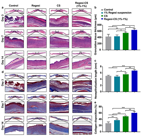 ���ȣ����ߌ���ͬ��ȵ�Regesi��Һ�cCS��Һֱ�ӻ�ϣ�ͨ�^������Pˮ��̎���õ���ͬ������Regesi-CSˮ���z��Regesi-CS��0.5%-1%����Regesi-CS��1%-1%����Regesi-CS��2%-1%����SEM���^����Mˮ���z����֧�ܾ�����Bͨ�����S��Y(ji��)��(g��u)���SRegesi���������࣬���ϵı���ֲڶ���u���ӣ�������϶����u�pС�������Û�ʺͽ�������u�½����D2�������У�Regesi-CSˮ���z�m�˵Ŀ�����϶�����������⡢�I�B(y��ng)���|(zh��)�ʹ��x�U����D(zhu��n)�\(y��n)���m�ڽM����(x��)����ճ�������L���^��(qi��ng)���Hˮ����Û���������ڸ��õ����Մ�(chu��ng)��B���ﲢ�S�־ֲ��h(hu��n)�����^�õĽ������������ڞ����Ԅ�(chu��ng)���ṩ��(w��n)�������ϱ��o(h��)���ã�������������ܛ�M���ޏ�(f��)���ϵđ�(y��ng)�Ý�����