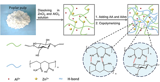 �Ї��֘I�ƌW�о�Ժ�֮a���W���I�о������Q�о��F��Ͼ��֘I��W��������о��F������һ�N�x�ӌ��ˮ���z(Ion-C-P(AA-co-AAm)),����ϩ��(AA)�ͱ�ϩ����(AAm)�ں����\�x��(Zn2+�����X�x��(Al3+)���w�S����Һ�й��ۡ��w�S�ط������е�?OH��Aam�����е�?NH2��AA������ ��?COOH�γ��˶��ؚ��I�Y�����D1����ˮ���z�еĚ��I�l�����Ѳ��ؽ�����K�γ����������ĽY������ʹ���L�ڽ�����ˮ�к�Ҳ�����l���^����Û���O��������Ion-C-P(AA-co-AAm)ˮ���z�Ŀ���Û���ܡ�ͬ�r�����ؚ��I�����ˮ���z�W�j�Y�����ܶȣ����Ƃ��ˮ���z��ʹ���������Ҳ�ܱ������õĉ��s���ܡ����⣬�wϵ�д��ڵĴ����x��߀�ṩ�˸ߌ���Ժͷ���������ԓˮ���z�����ژO�˗l���±��֑�׃�����Ժͷ����ԣ��������^�õرO�y����\�ӡ�